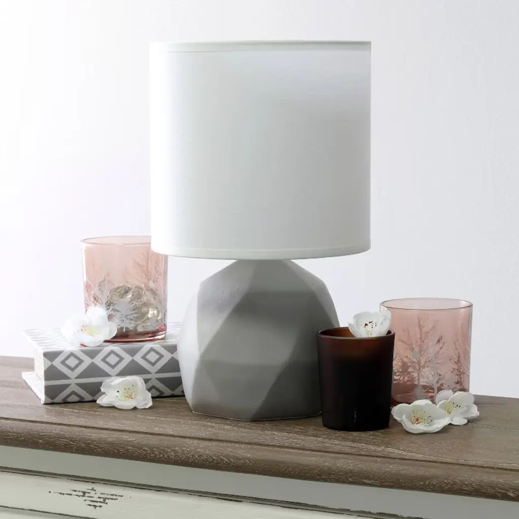 This mini lamp features a gray concrete geometric base and a black fabric shade that holds a Type B Candelabra base bulb. It is a lovely, inexpensive, and practical 10.60" table lamp to brighten up your space in style! Perfect for living room, bedroom, office, kids room, or college dorm! Please check out the additional color options that are available, to compliment your room of choice.