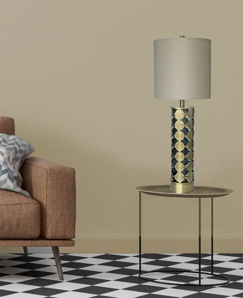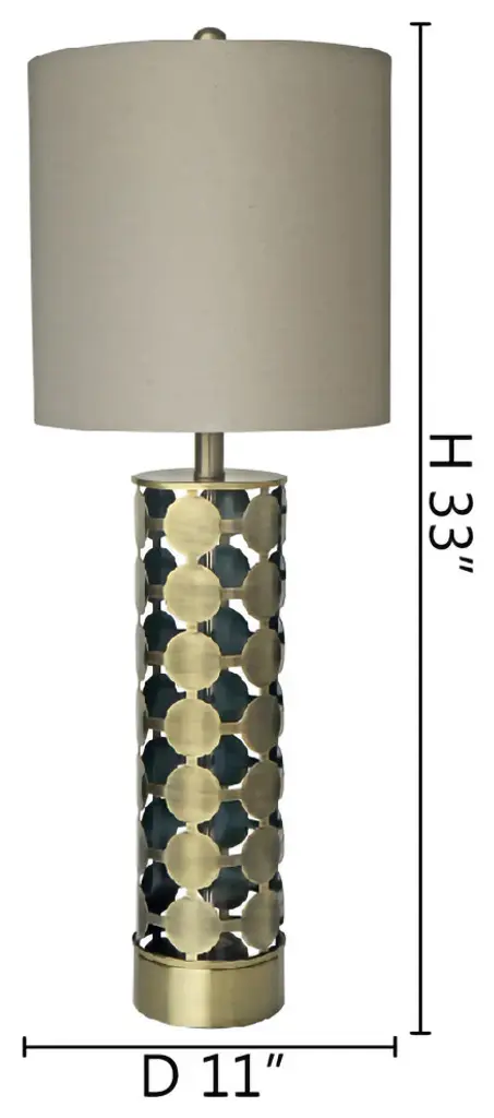 This modern and stylish table lamp features a unique geometric design with a brass metal frame. The minimalist design creates a dramatic and eye-catching effect, perfect for adding a touch of contemporary flair to a living room or bedroom.Color: Antique BrassSize: D5" H18"Materials: MetalLighting Specs:Commercial Use: YesUL Certified: YesETL Certification: NoLight bulbs not includedNumber of Bulbs: 1Bulb Type: E26Max Wattage: 100