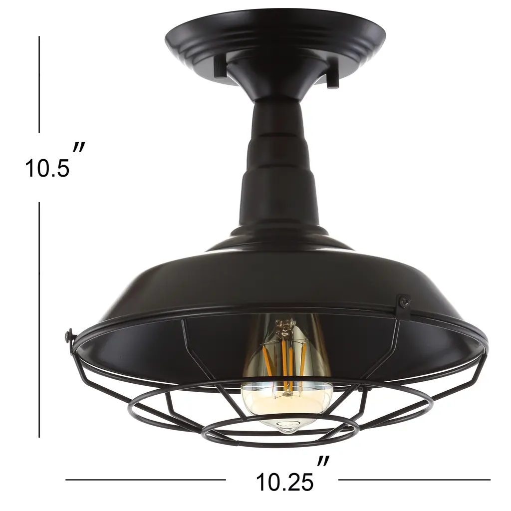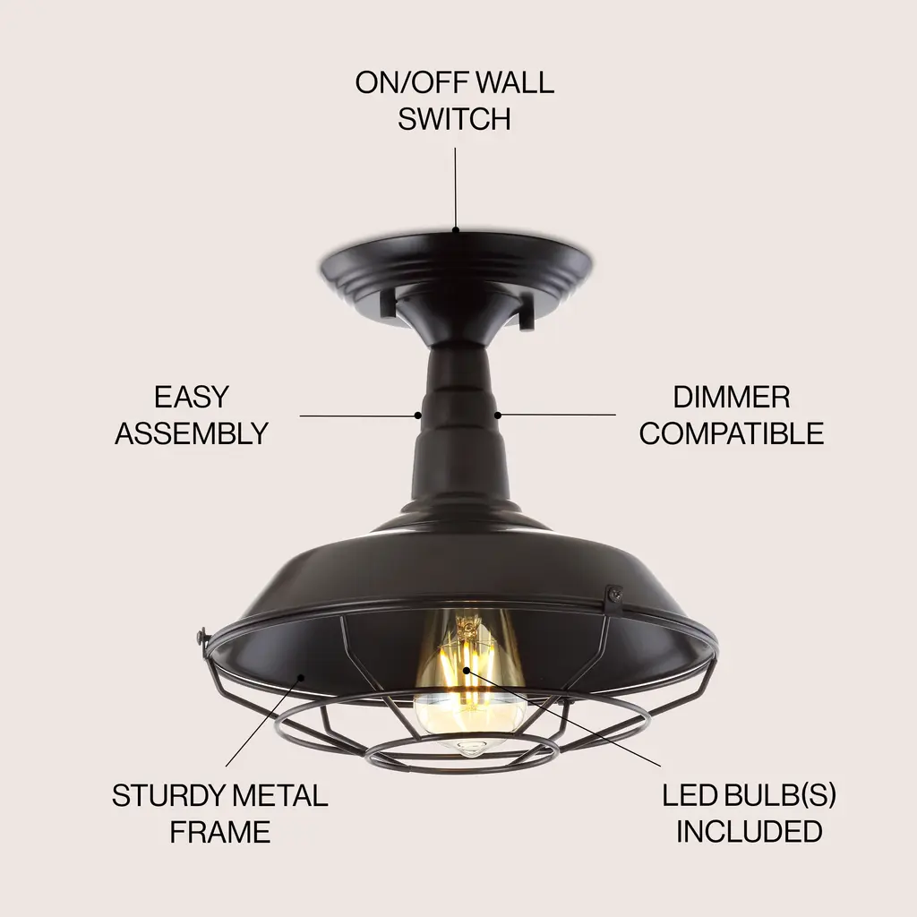We love the simple, rustic feel of this tasteful semi-flush mount. Its LED-compatibility makes it convenient and energy-efficient. We love to hang it on its own, in a pair, or as a trio in small spaces where it is best suitable. Features: About us:You see a lamp.We see a decorative work of art.A perfectly curved shade casts a dramatic shadow on a floor. Compatible with LED lightbulbs: as easy on the environment as they are on the eyes. The JONATHAN Y Lighting collection considers every detail from impeccably sourced materials to designer styling. And our prices are so attractive, we've transformed a functional necessity into a fashion accessory.JONATHAN Y Lighting - a fashion revolution in home decor.