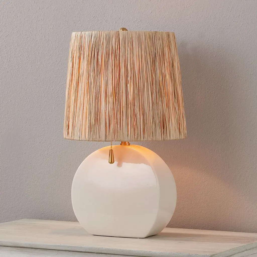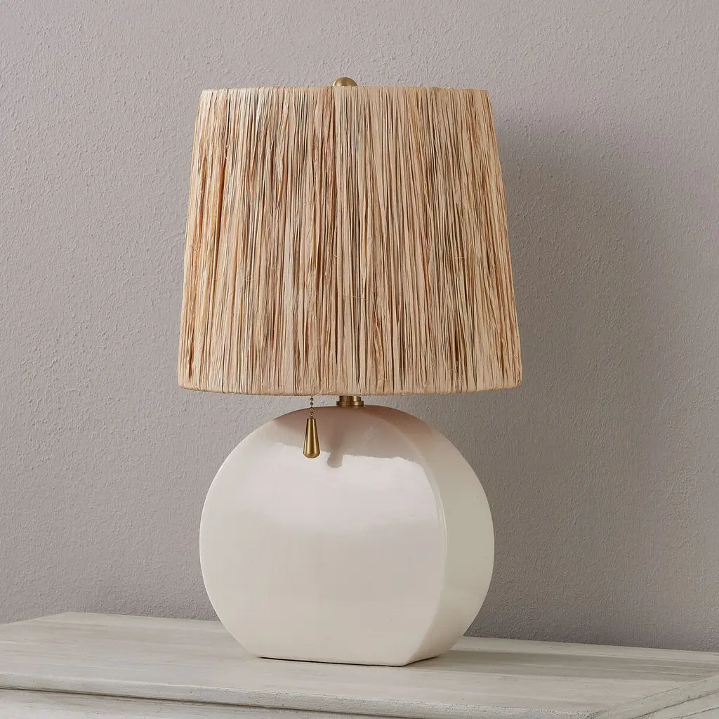 Georgiana Table Lamp, White/raffia