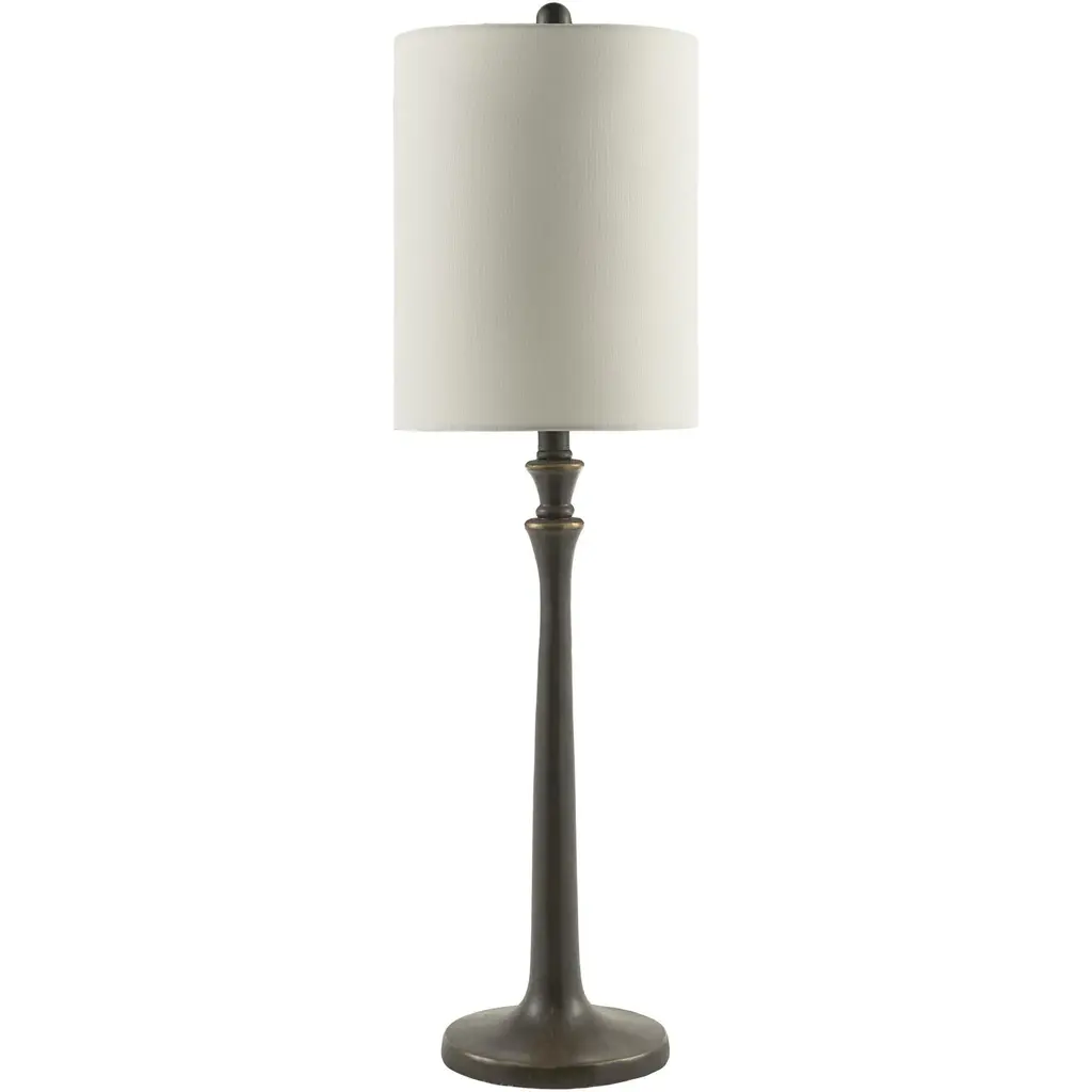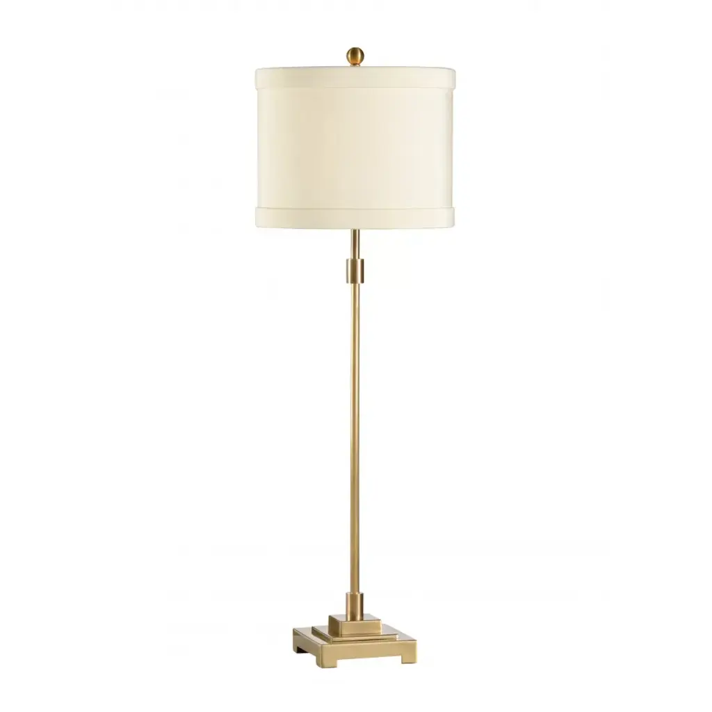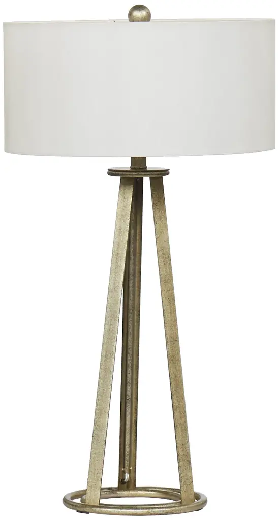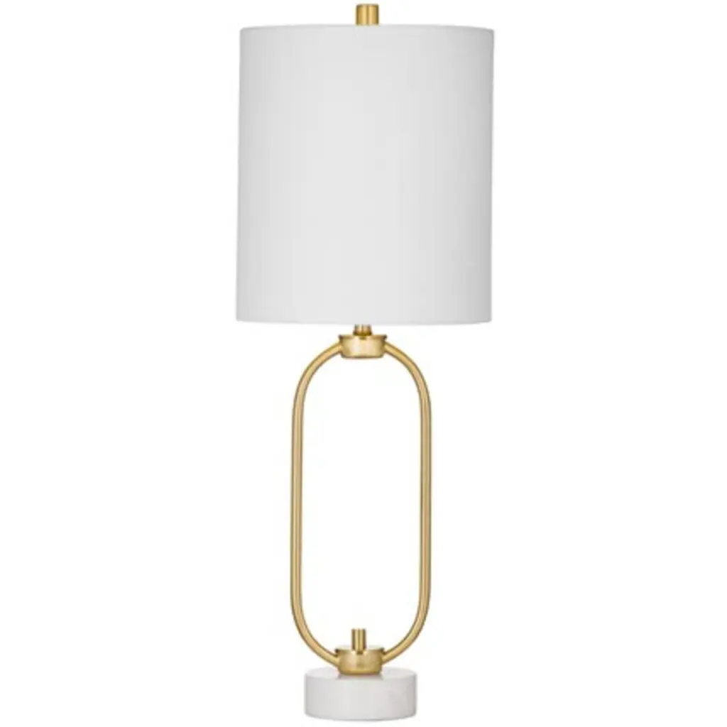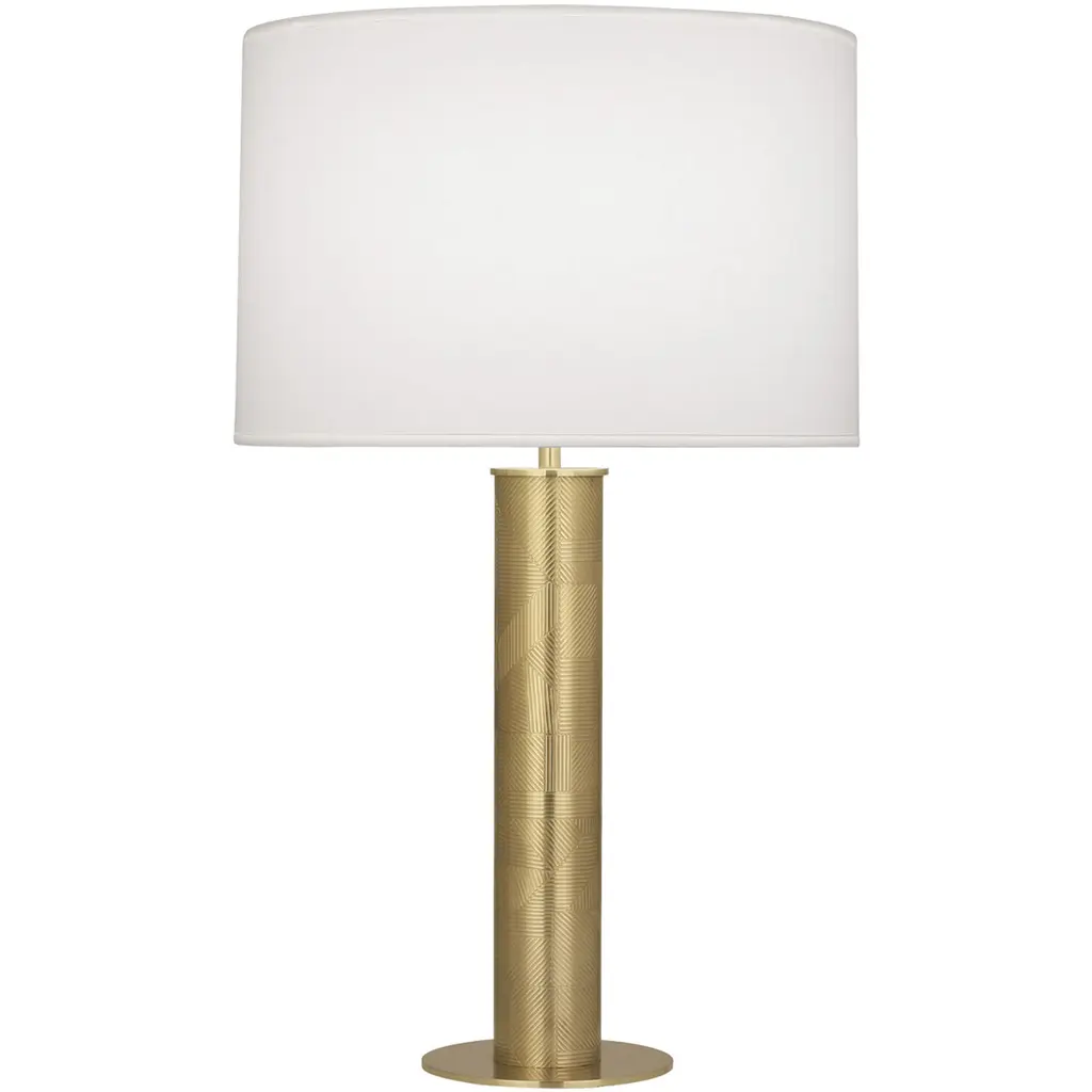 It doesn’t take much geometric enhancement for a stem-like body of a lamp to take on added personality. Our Germaine Table Lamp with its cleverly placed circlet is proof of this. Made of aluminum in an antique brass finish, the straightforward design will prove to be flexible, fitting beautifully within any number of room styles. An antique brass finial fastens the natural cotton flax shade to the brass lamp. We also offer the Germaine in a floor lamp.