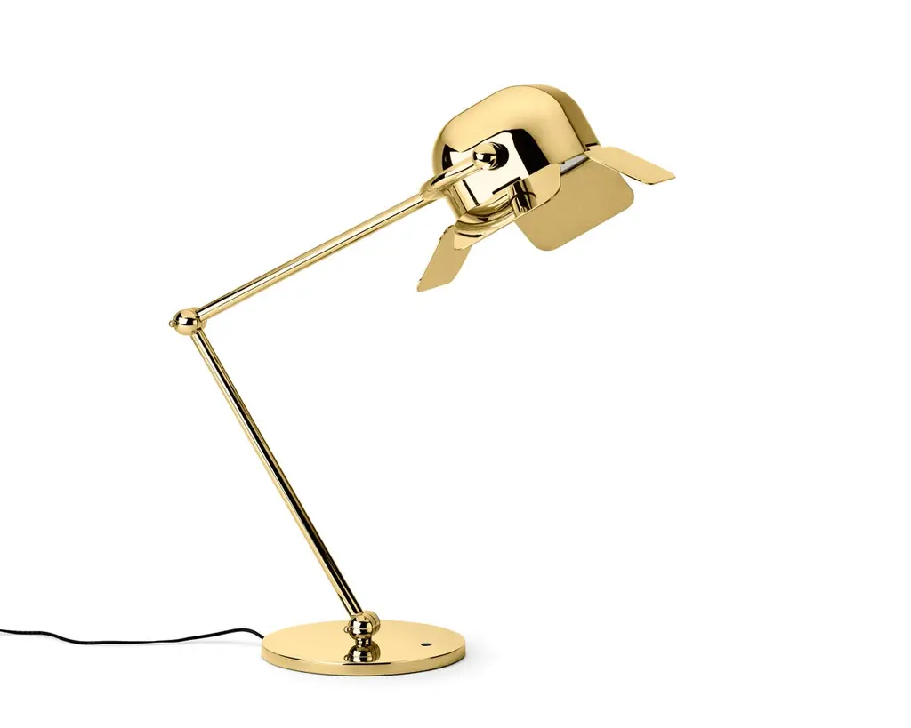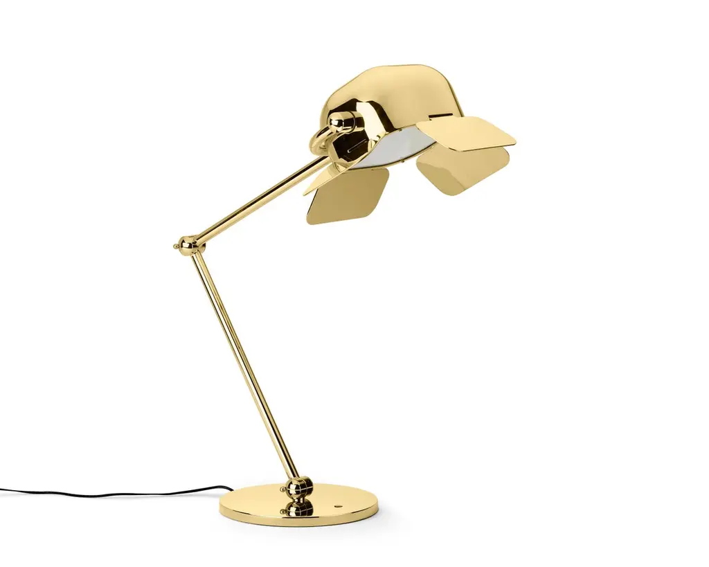 Table lamp in brass and aluminum. The vibrant stream of light coursing from this adjustable self-standing steel flamingo is all about brightening up even the coldest of corners. Misjudgments, misguidance and misfits, they all disappear under the melting embrace of light. Like on the burning sun, where we never cry.Materials:Brass and gold plated aluminum (head).