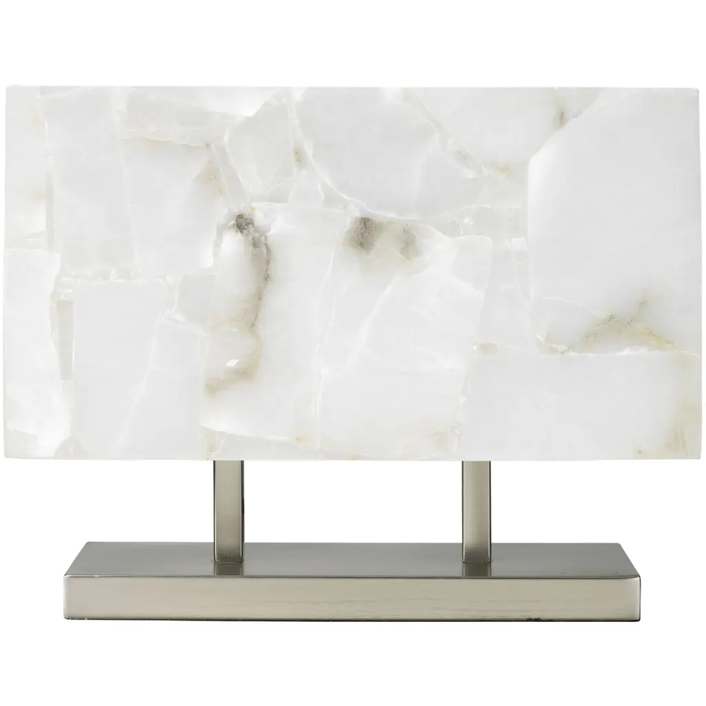 Named "Ghost" after the perfect way the pearly alabaster shade seems to float above its antiqued metal base. Emitting a soft glow that showcases the unique veining inherent in alabaster. The hand-carved stone will cast the perfect glow over any room.