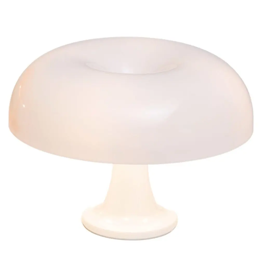 Giancarlo Mattioli 'Nessino' table lamp in orange for Artemide.With its mushroom shape and bright hues, the Nessino lamp has become a design icon. Introduced in 1967, the Nessino was a marvel of ABS thermoplastic injection-molding, bringing affordable industrial materials and methods to the home and office environments. With a dash of color and a design inspired from nature, Nessino fits into a wide range of interiors.Price is per item. Available to order in unlimited quantities in white, orange, red, blue, light blue, black, yellow, and green. Also available in the larger Nesso model - please see our separate listings. This listing is for the Nessino in orange.In-stock and available for immediate fulfillment. Out-of-stock can take an additional 7 weeks or more. Stock availability subject to change and without notice. Please inquire for current lead time prior to placing time-sensitive orders.Accommodates 4x maximum 25 Watt Equivalent candelabra (e12) LED bulbs with a recommended G16.5 size (not included). On/off switch on cable. IP20 rated and UL listed.Born in 1933, Italian designer Giancarlo Mattioli was part of the Urban Architects Group “Città Nuova” - a union of young professionals established in the early 1960s in Bologna, Italy who decided to engage in collective architecture and urban design.Made to order.All sales are final.