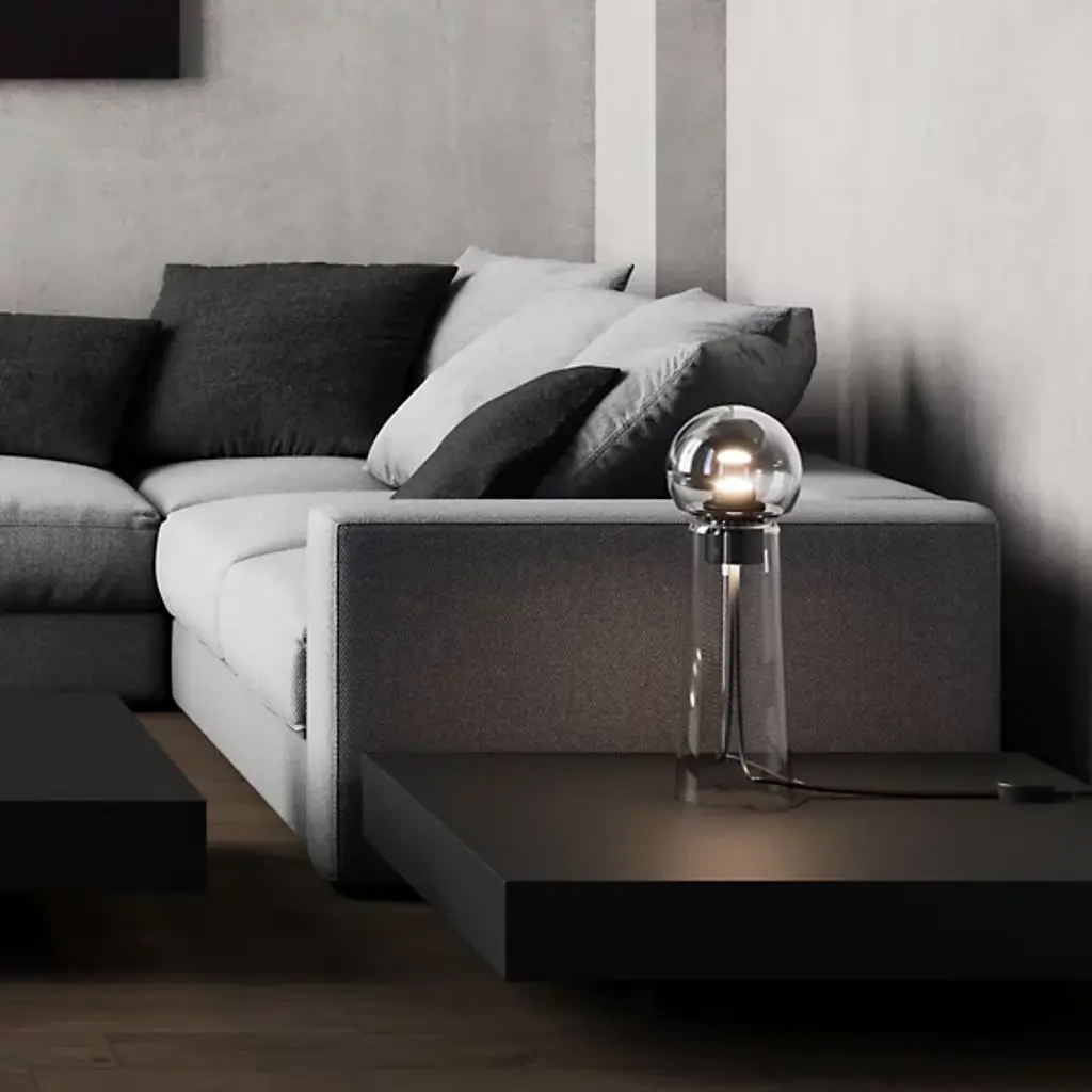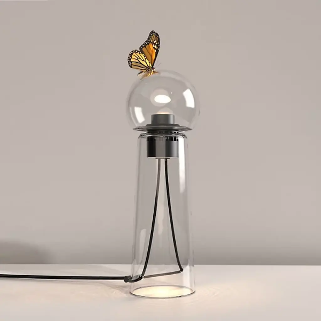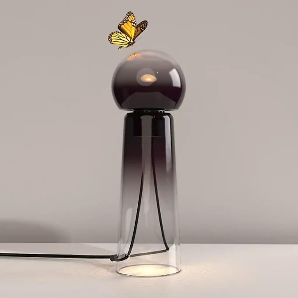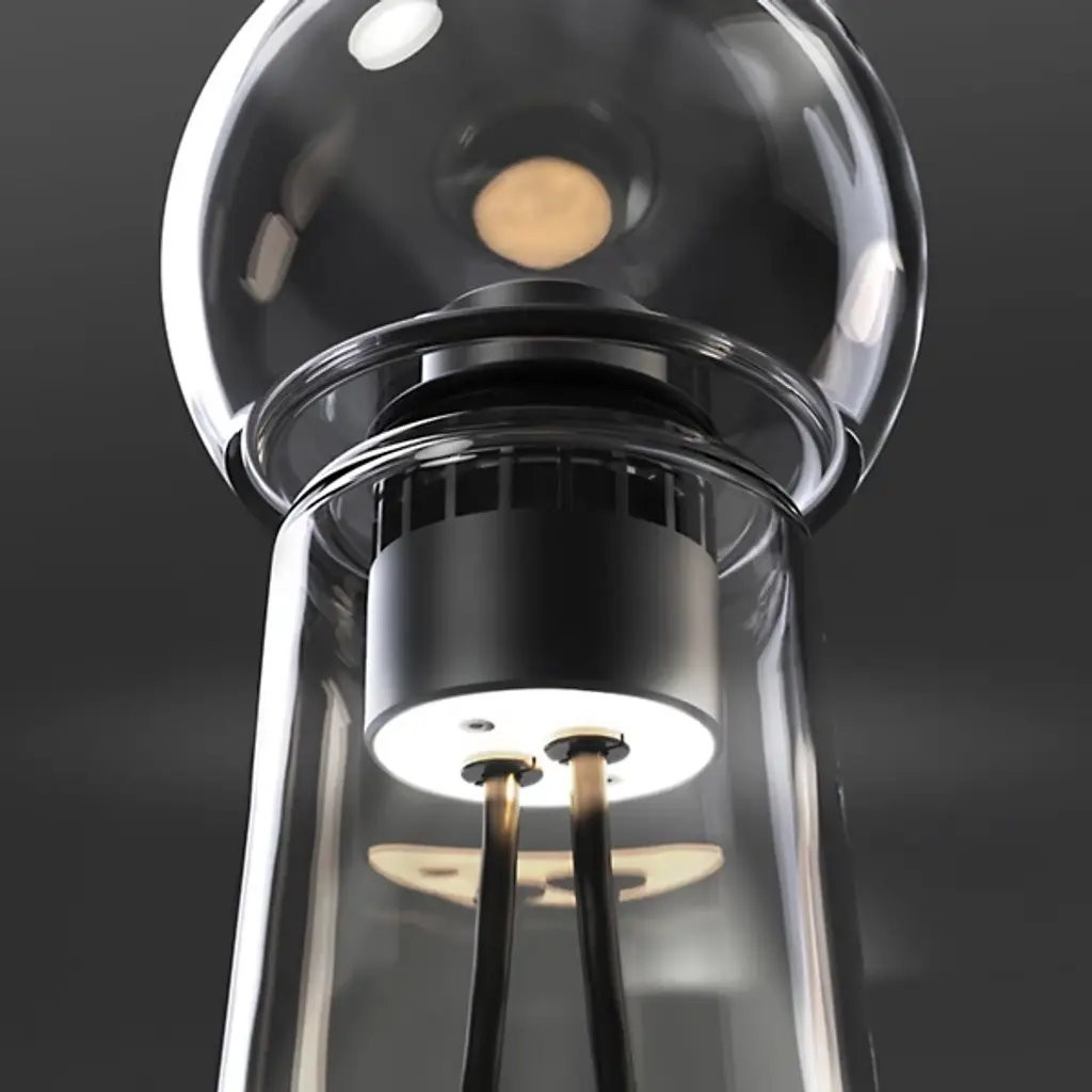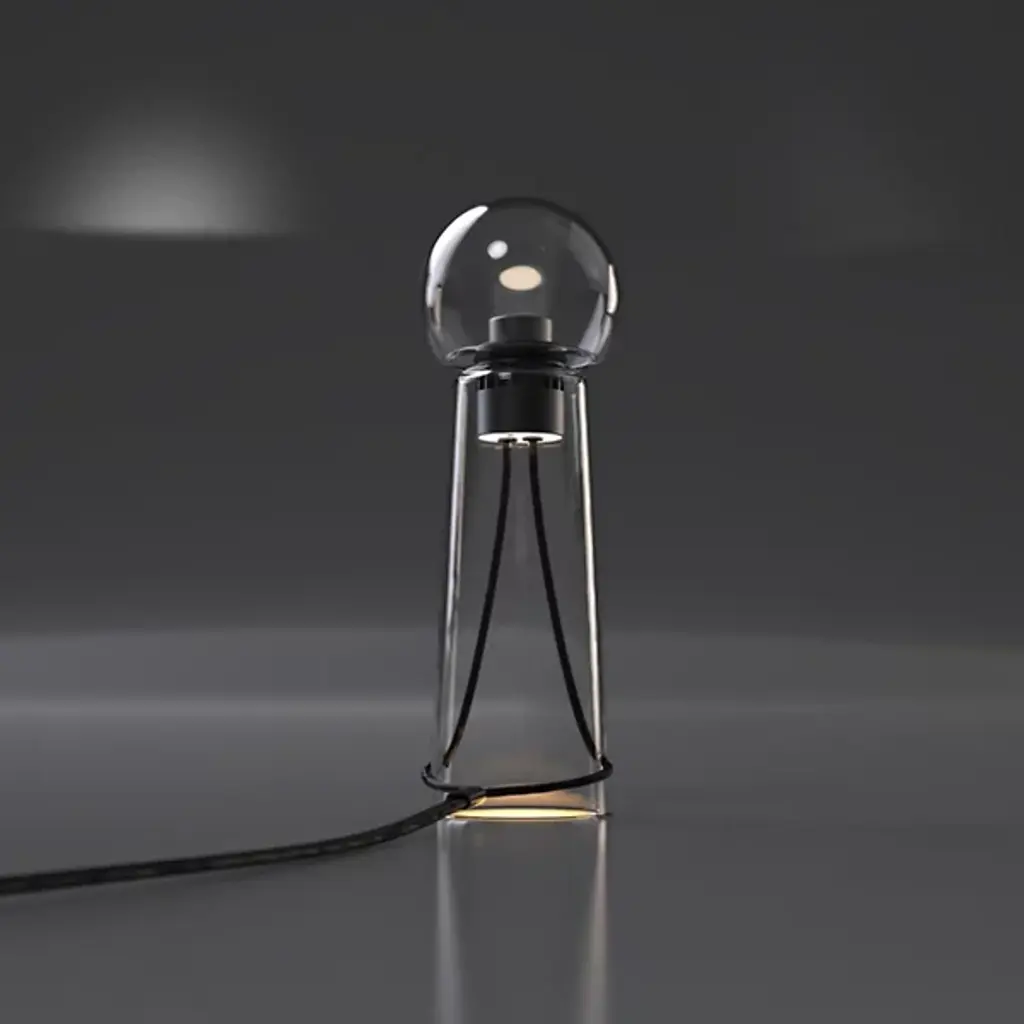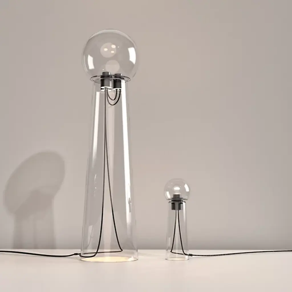 Accent the smaller surfaces of your home with the stylish and stand-out presence of the Gigi LED Table Lamp from Darmes. Made of handcrafted blown glass throughout, this unique and thoughtful piece was designed by Alexandre Joncas. A thin wire leads inside a clean and transparent cylindrical body and splits into a pair that lead up to a single light source. The bowl-shaped head houses a light source that diffuses through the material with ease, creating a welcoming glow in the surrounding space.