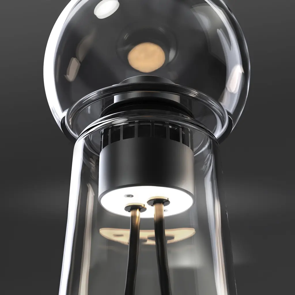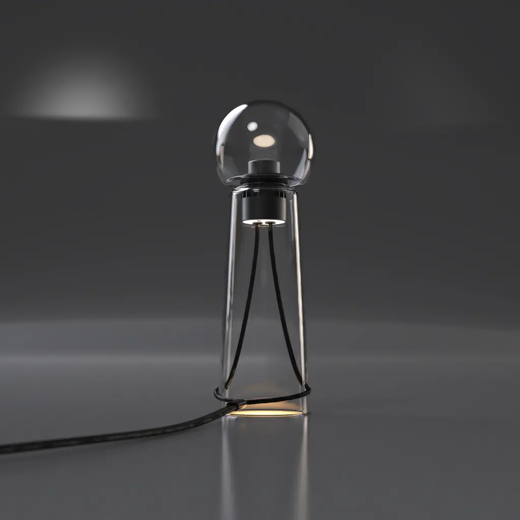 Crafted by skilled glassblowers, its unique shades and colors emerge through the material, alternating between opacity and transparency. This creation resulted from the collaboration between Studio d’Armes and Verre d’Onge, merging expertise in glass and light. Gigi's design, both in table and floor versions, focuses on providing a sensory experience that highlights its physical presence. It features high-quality two-way lighting that dims to warmer shades, creating a soft and joyful ambiance.