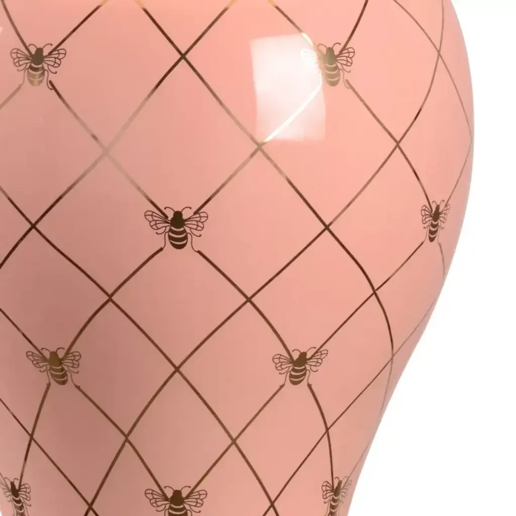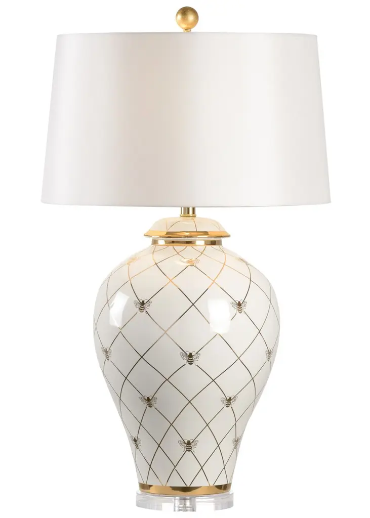 A Ginger Jar Inspired Table Lamp To Grace Any Table From Bedroom To Office. Featuring A Royal Bee, Metallic Satin Gold Geometric Pattern And Metallic Gold Accents. Available In A Variety Of Colors.