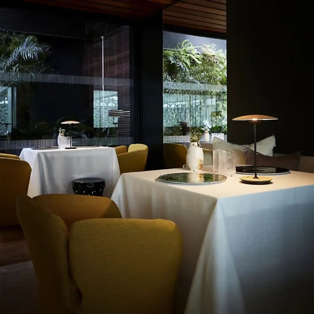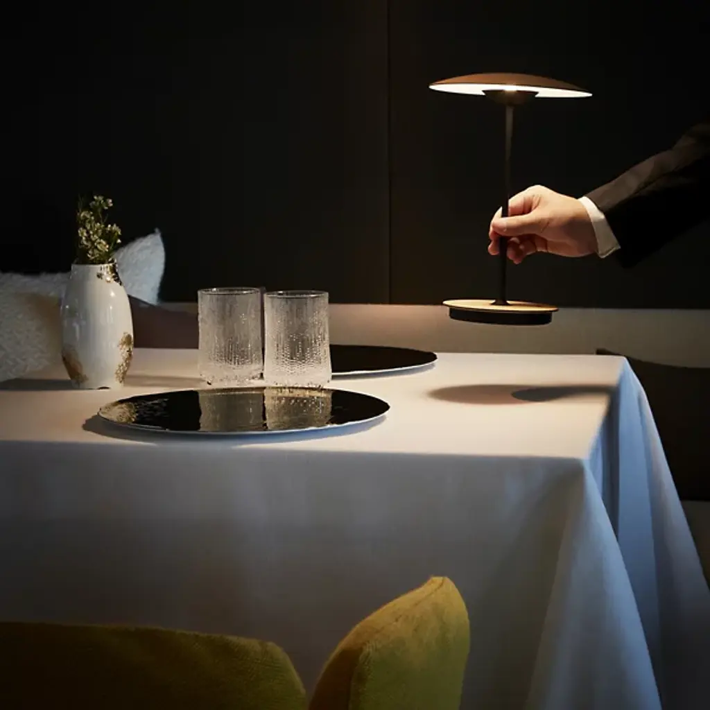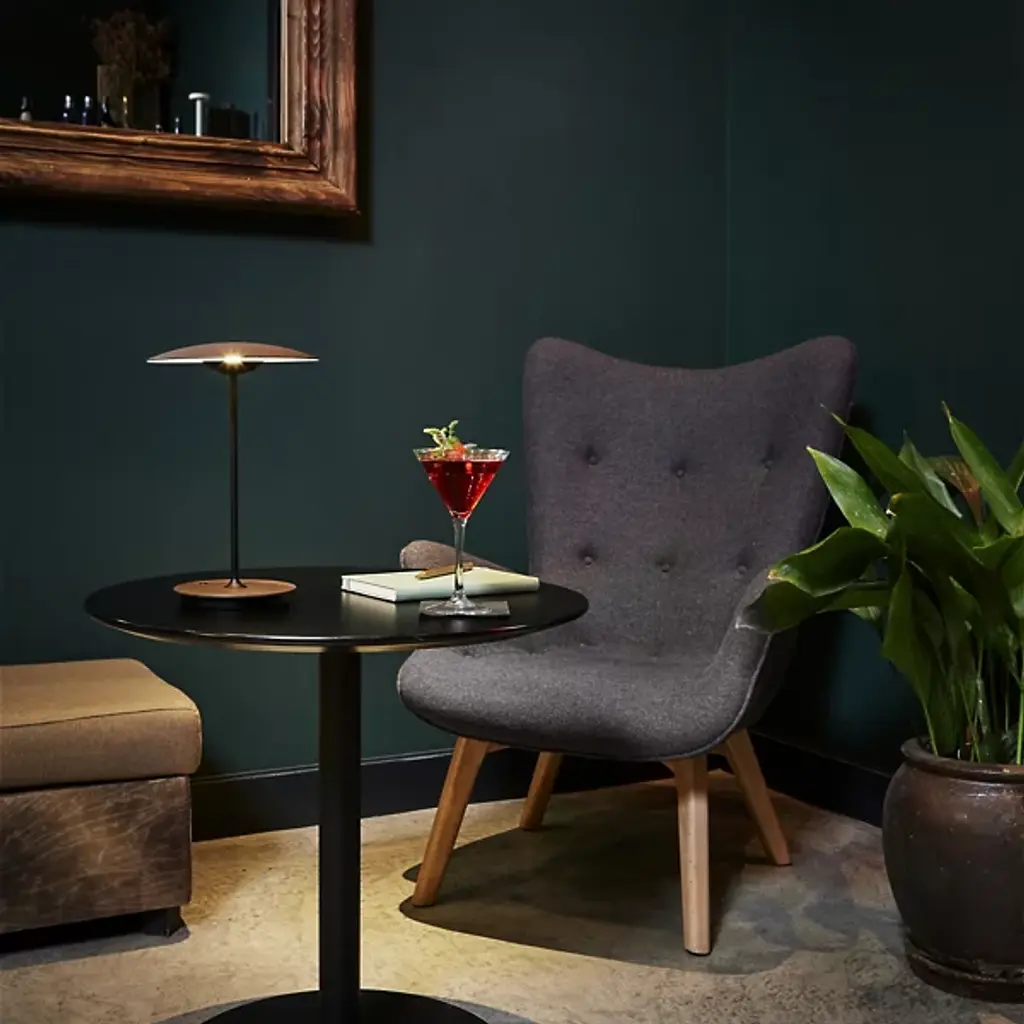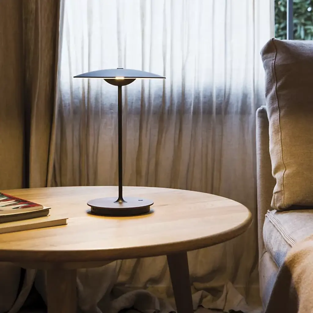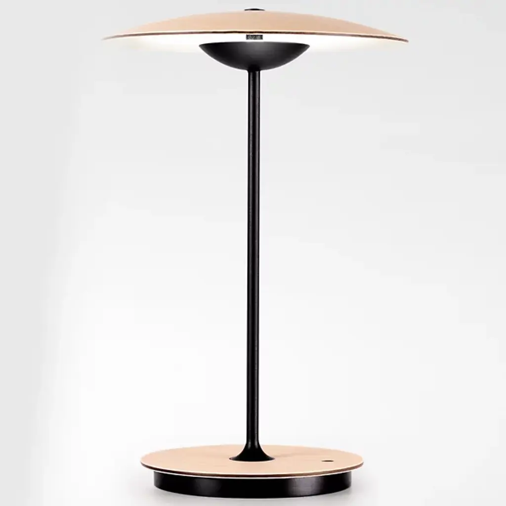 Now you can take Ginger on the road. The Marset Ginger Rechargeable LED Table Lamp, Set of 2 expands on the warm and woody collection, as a petite, rechargeable version of the original Ginger LED Table Lamp. The shallow dome shade (and matching base) is made out of 4mm thick wood laminate, which glows beautifully with the light of the dimmable LEDs. And, with the battery fully charged, it can glow anywhere you need it to for up to 5 hours at full brightness.