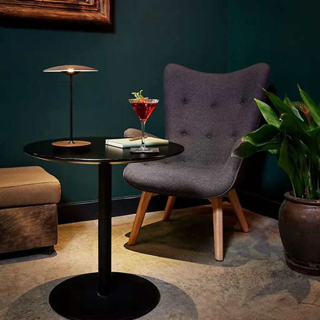 Add a warm layer of light to the smaller, more intimate spaces of your home with the Ginger Rechargeable LED Table Lamp – Set of 2 from Marset. Designed by Joan Gaspar in 2014, this clean, yet simple piece has gone through several incarnations over time, currently available with a clean metal composition. The silhouette consists of a wide, rounded base that matches the subtly curving shade resting above at the other end. A slim stem connects the two, and a brief, dome diffuser lies below the shade and holds an integrated LED that emits a bright glow. The shade mutes and disperses the glow into a warm and inviting illumination ideal for reading or working by.