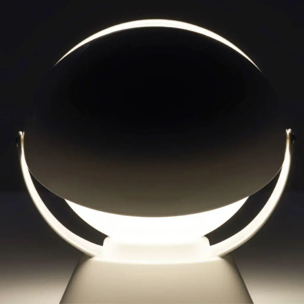 Giovanni Gorgoni 'Buonanotte' metal & acrylic table lamp in red for StilnovoFounded in 1946 in Milan, Stilnovo was one of the most innovative lighting companies in Italy during the Midcentury era, producing iconic pieces by such luminaries as Joe Colombo, Angelo Mangiarotti, Ettore Sottsass, Gaetano Scolari, Piero Castiglioni, Bruno Gatta and others. Stilnovo was relaunched in 2019 with a commitment to faithfully re-edition its legendary designs with uncompromising attention to detail, materials and craftsmanship.The 'Buonanotte' table lamp, originally designed in 1965 by Giovanni Gorgoni, is a playfully fun lamp adjustable to accommodate the user's evolving luminosity needs. The reflector's two metal shades each rotate around the spherical opal acrylic diffuser allowing for both direct and indirect light, upward as well as downward. As a pupil of Giò Ponti and Vittorio Gregotti this Gorgoni table lamp has become a staple of any Italian lighting collection. Meticulously re-editioned to Stilnovo's exacting standards using the finest materials available. This lamp is executed in painted metal and opal acrylic.Price per item. Available to order in unlimited quantities and in choice of white, red, yellow or blue. This listing is for the 'Buonanotte' metal & acrylic table lamp in red for Stilnovo.In stock lead time 4-6 weeks. Out of stock can add an additional 8 weeks or more. Please note that lead times and inventory availability are subject to change without notice. For time sensitive orders, please contact us for current lead times prior to purchasing.Illuminated via a single E12 candelabra bulb. Recommended dimmable 6 watt LED bulb providing 500 lumens with 3000K color and CRI of 90 (bulb not included). Powered by black cord of 6.6' length with an integrated switch. This lamp is UL listed.Made to order.All sales are final.