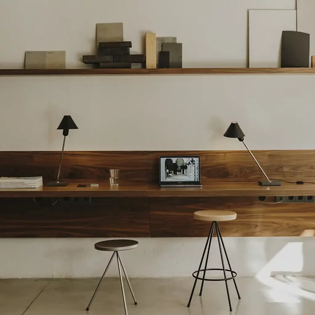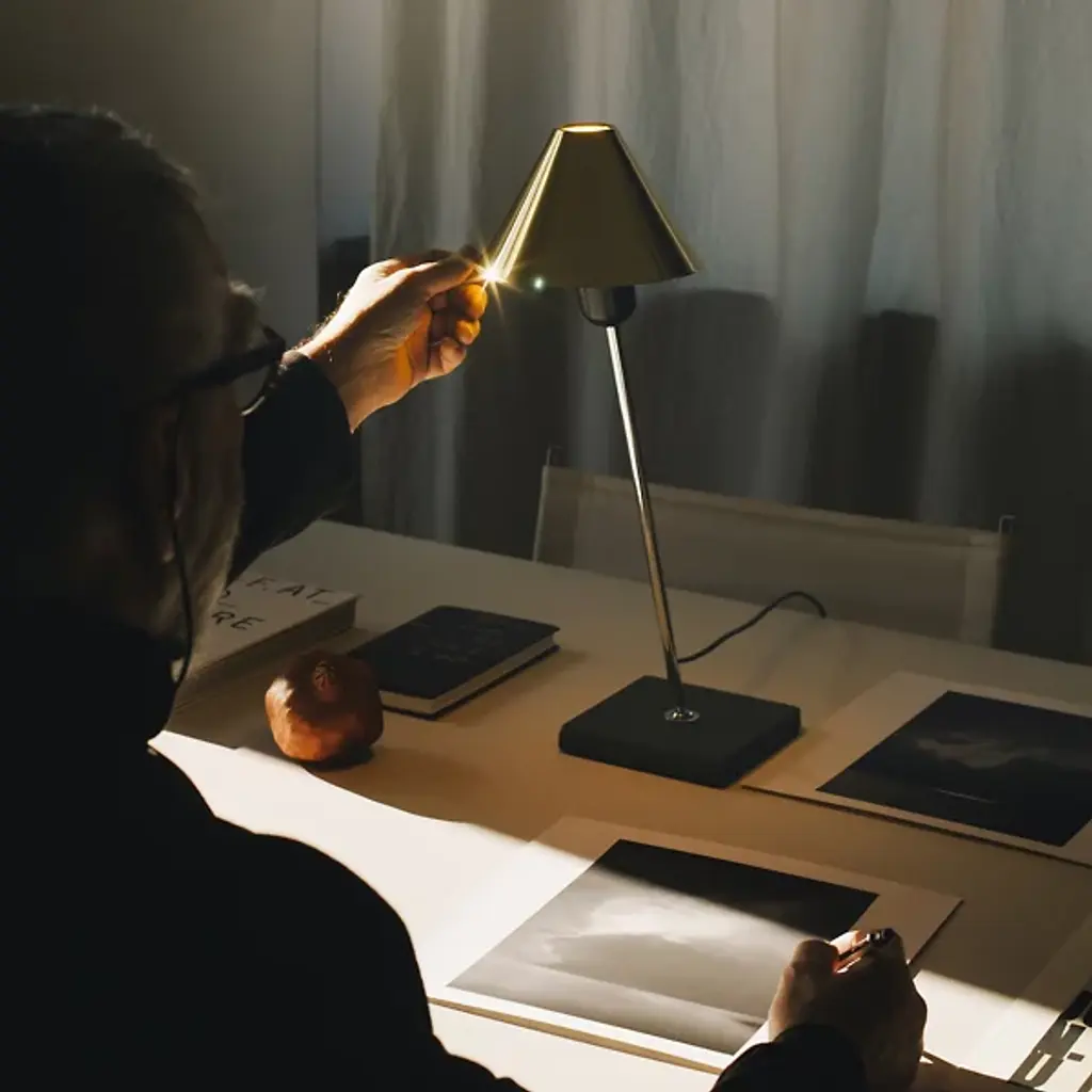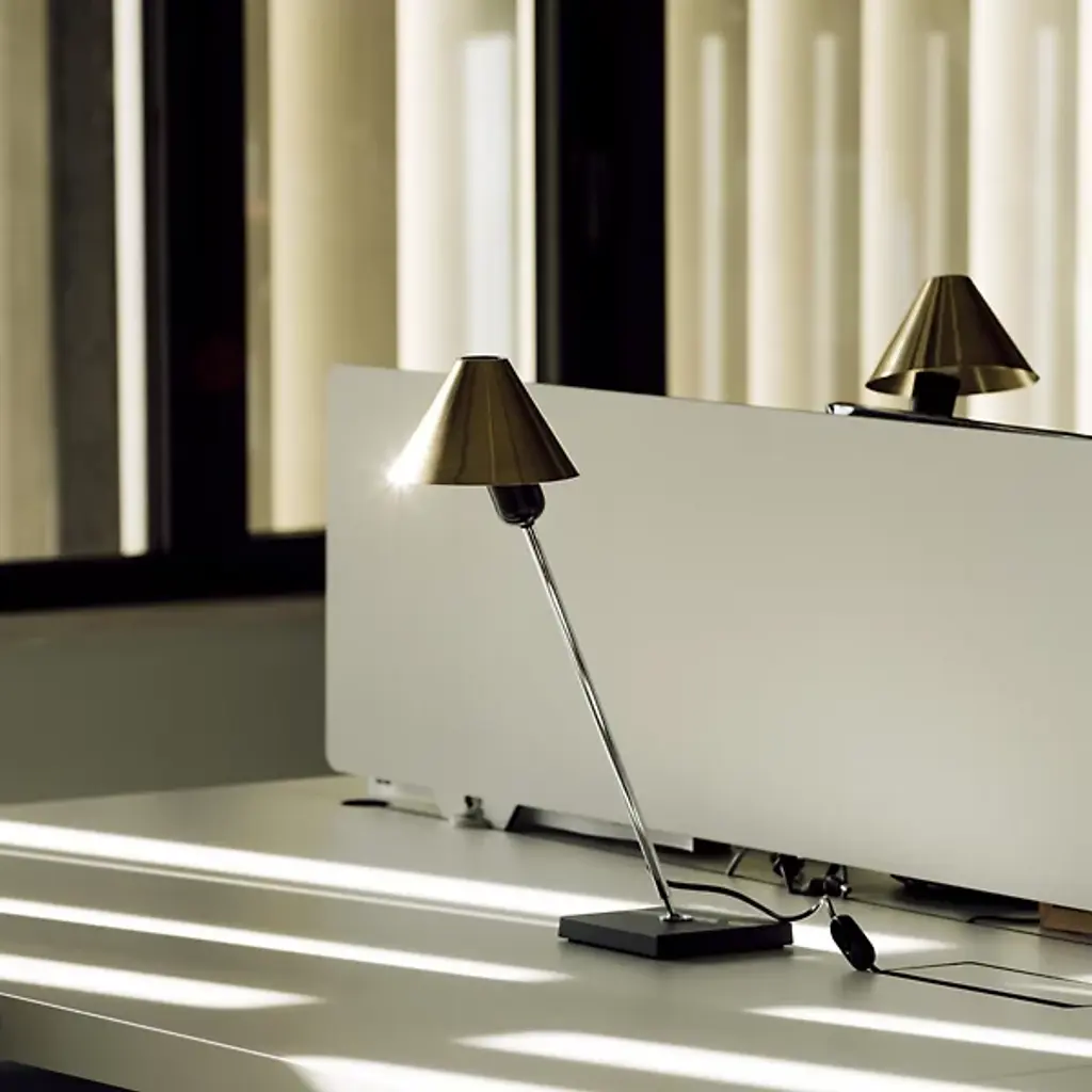 Defined, clean lines and geometric shapes. The Gira Table Lamp by Santa & Rose is a stylish task lamp for offices, home, and hotels. Requiring an LED module, the lamp features a flexible Aluminum arm to provide more focused lighting when reading or working. Classic Spanish design and basic shapes inspired creators Ferrar, Massana, and Tremoleda to give users an intimate, warm connection to the light source.