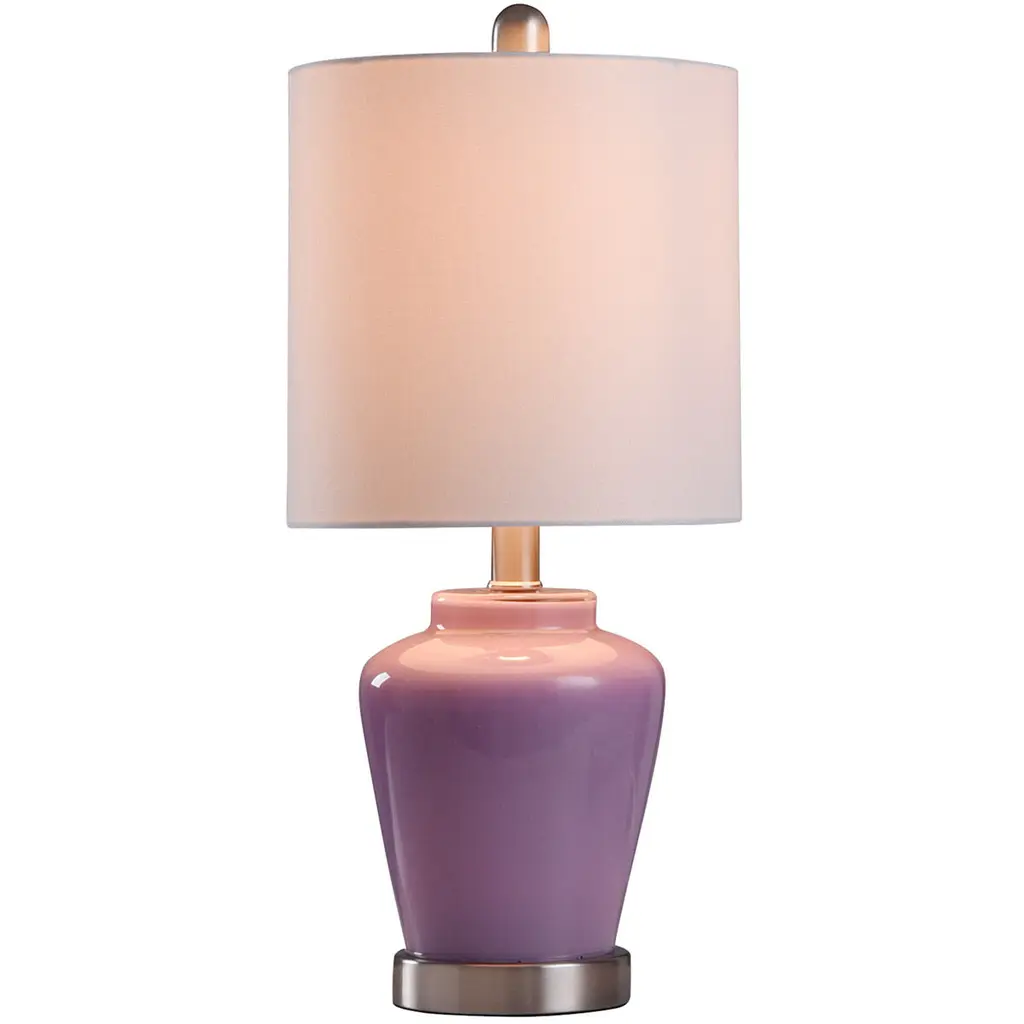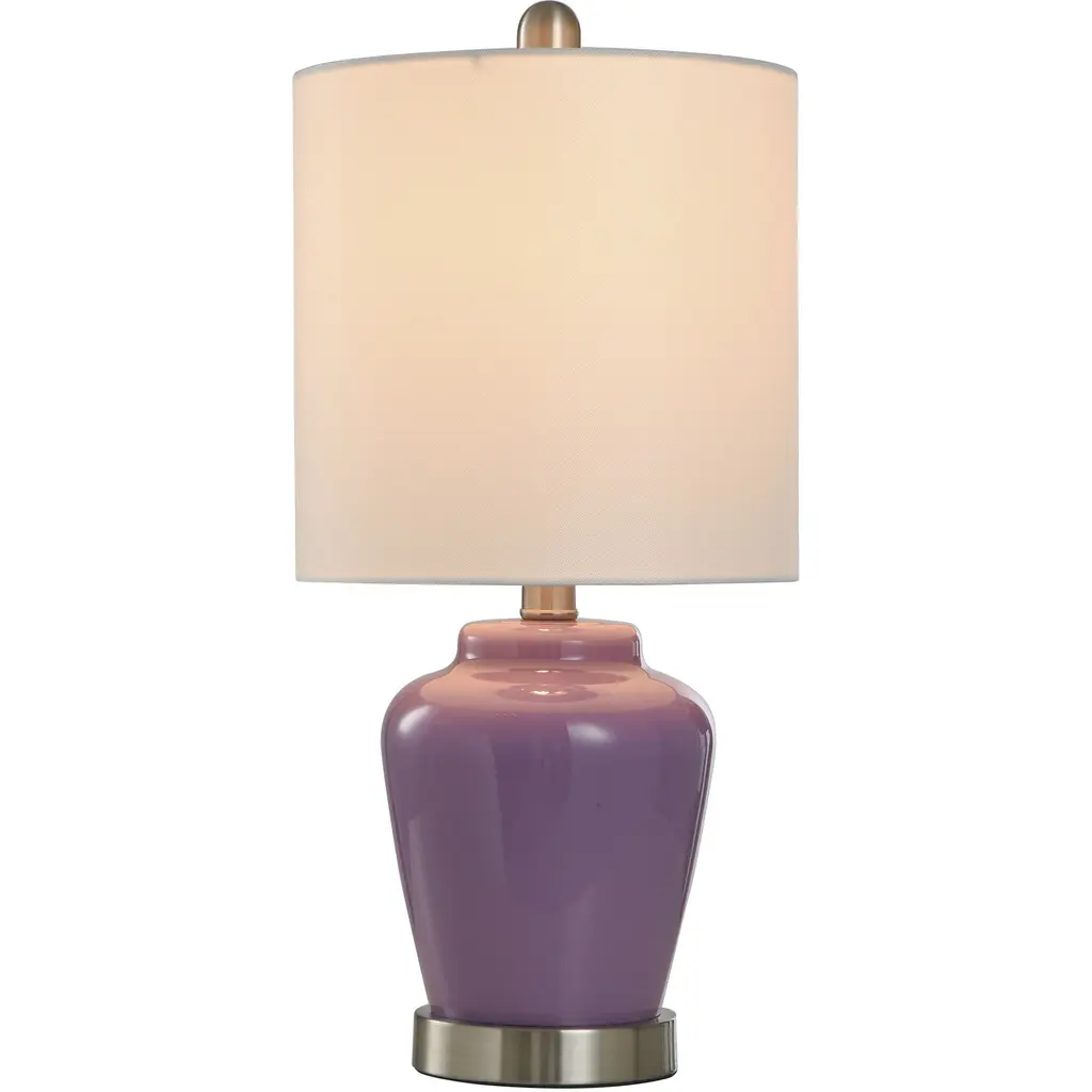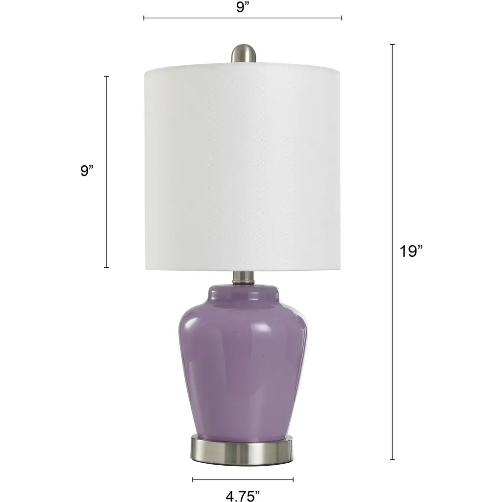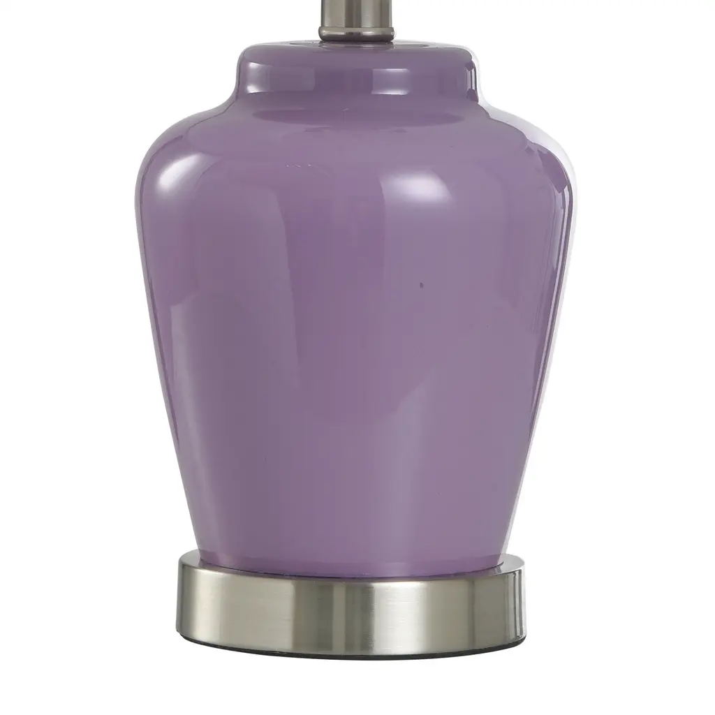 Glass 18.5 Inch 40 Watt Lilac And Brushed Steel And White Table Lamp Portable Light