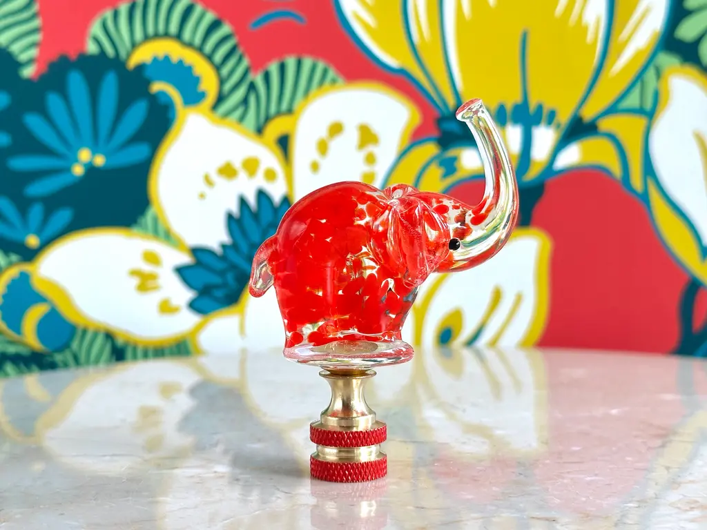 Update your existing lighting or add a distinctive finishing touch to any table lamp with a designer lamp finial crafted from a blown glass elephant mounted on swivel hardware sized to fit a standard-size lamp harp with a 1/4" stem.