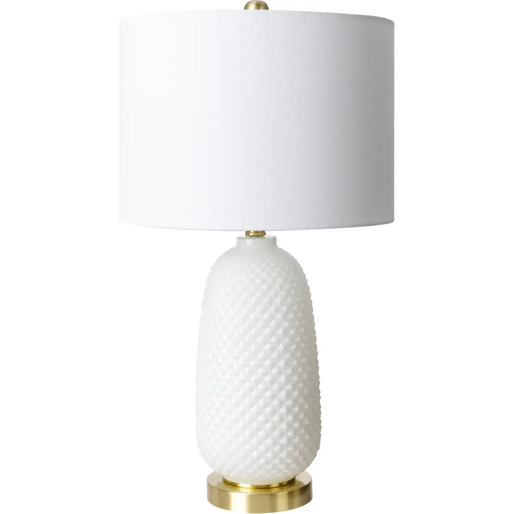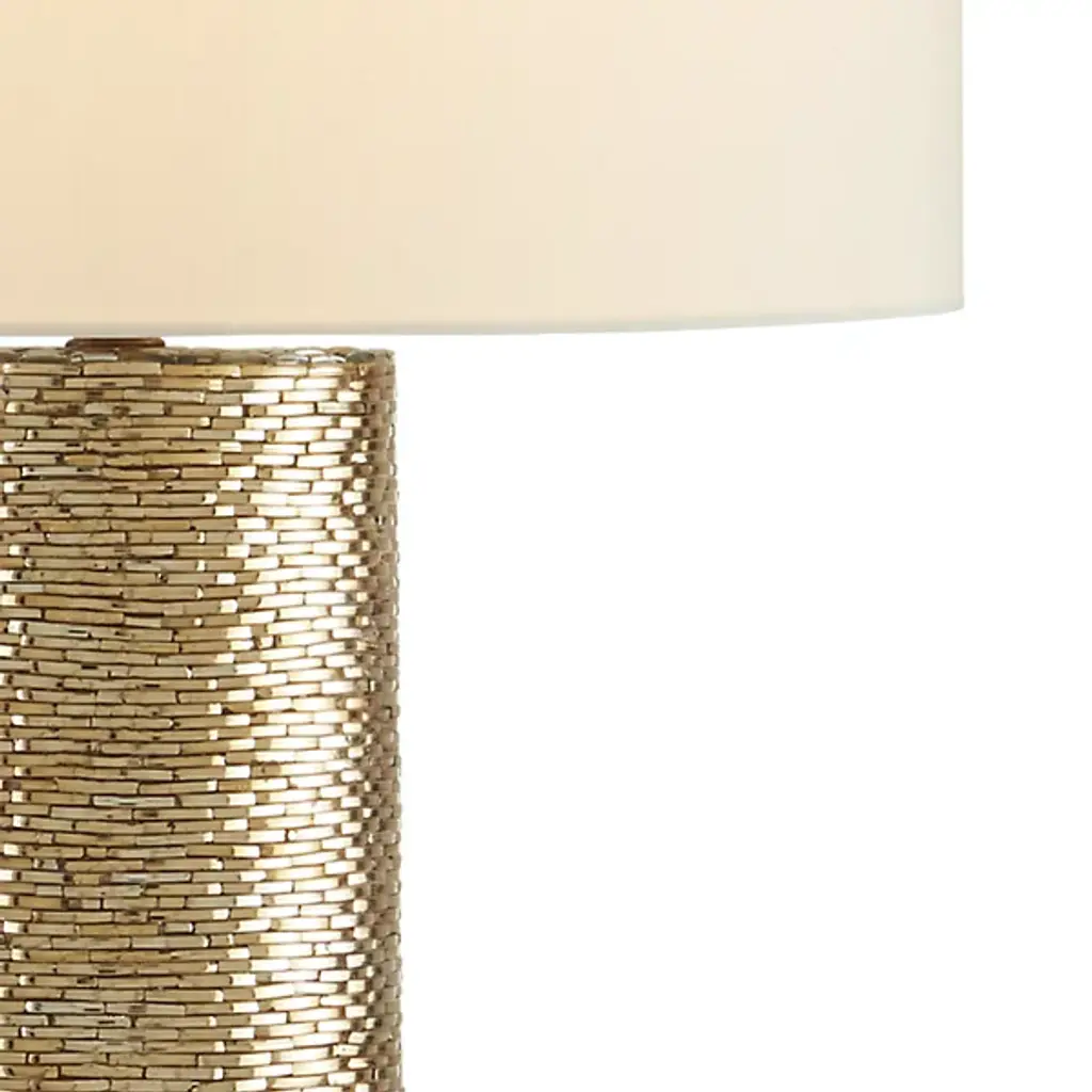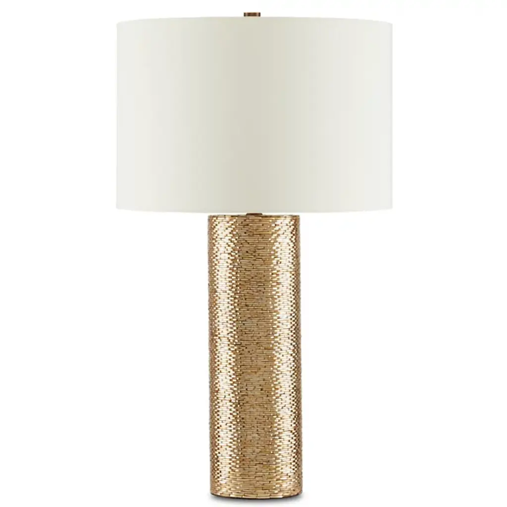 Give your home the look of luxury with the Glimmer Gold Table Lamp by Currey & Company. An innovative blend of Wood and Glass has been formed into a slender cylindrical body. From the lamp’s body stems a neck crowned by a shade of Polyester that softens the glow emanating from a 3-Way White Bulb. Your Transitional decorative arrangement preserves its ambiance while receiving the table lamp’s illumination. This lamp is easily taken from one place to the next, thanks to its portable design.