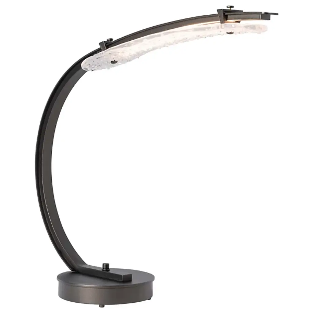Inspiration for the Glissade struck designer Andy Morter as he was walking across an icy midwestern pond. "The jagged edges of the ice were unlike anything else Id seen in nature. Theres something raw and beautiful in that contrast - sharp yet serene, delicate yet strong." With its gracefully curved steel arm and base dimmer, this table lamp does double work as both a decorative and task light.