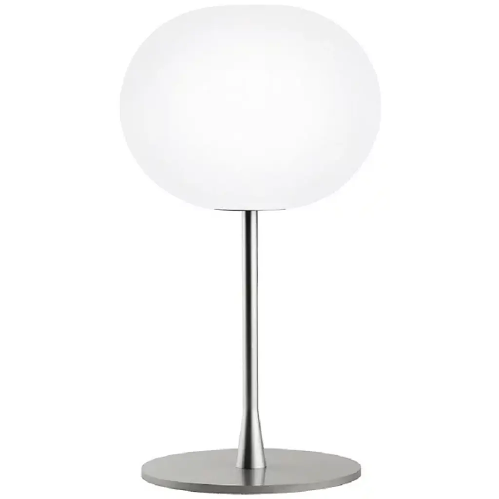 The Glo-Ball Table Lamp from Flos is quiet luxury, perfectly distilled. Designed by Jasper Morrison, its minimalist form—an opal glass orb resting on a sleek base—feels effortlessly serene, like a full moon captured indoors. The hand-blown, acid-etched glass diffuses light into a warm, atmospheric glow that elevates any space without demanding attention. Subtle, sculptural, and endlessly versatile, Glo-Ball is a timeless study in refined simplicity. Highlights