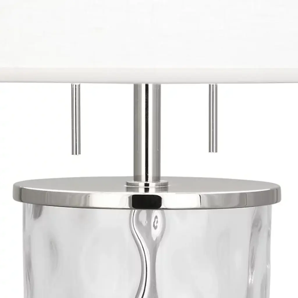 Prominent design that fits a plethora of spaces. The Gloria Table Lamp by Robert Abbey is a beholder's fascination from top to bottom. It is highlighted with a drum-shaped base that is detailed with wavy-like patterns to create an immersive aura around the fixture. This table lamp is enhanced with an oyster linen shade that houses an incandescent bulb (not included). Diffusing a unique, warm ambient light, this fixture adds comfort and character to living rooms, bedrooms, and other interior spaces.