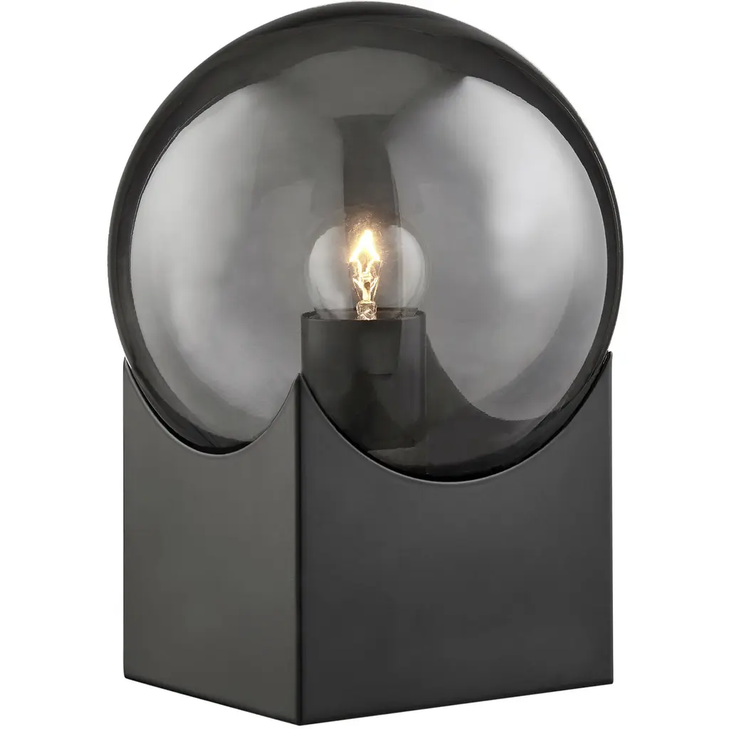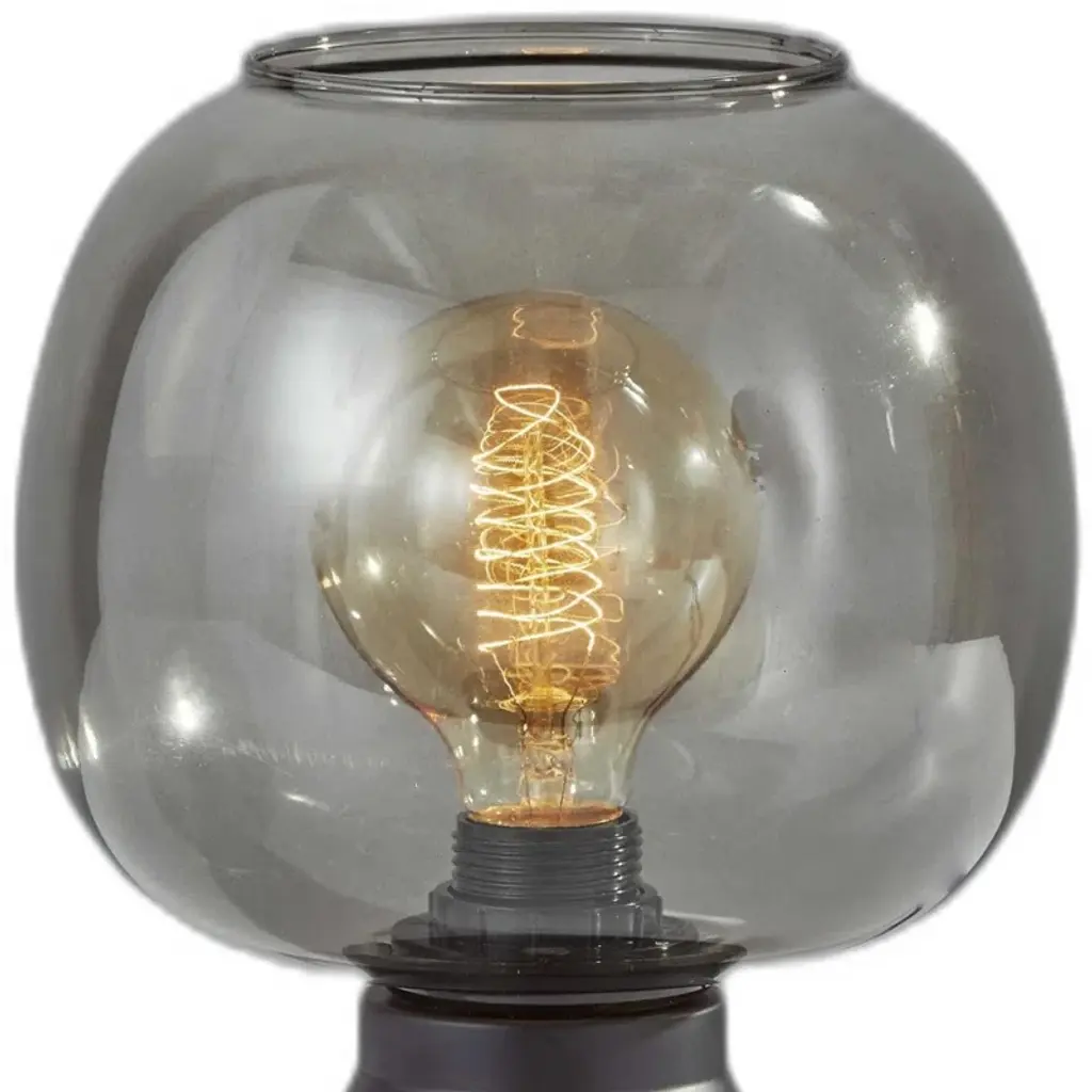 Inspired by vintage industrial fixtures, this table lantern showcases a moody smoked glass shade that echoes the globe silhouette of its included filament bulb. Its conical body is built from metal in a matte black finish, with a fabric-covered cord to round out the function-forward retro look.