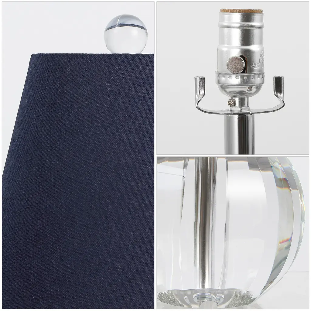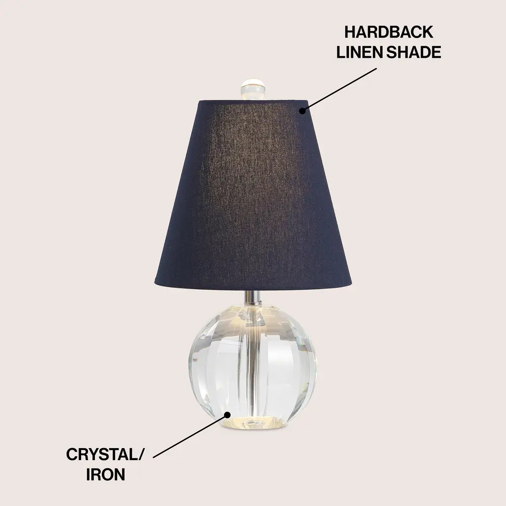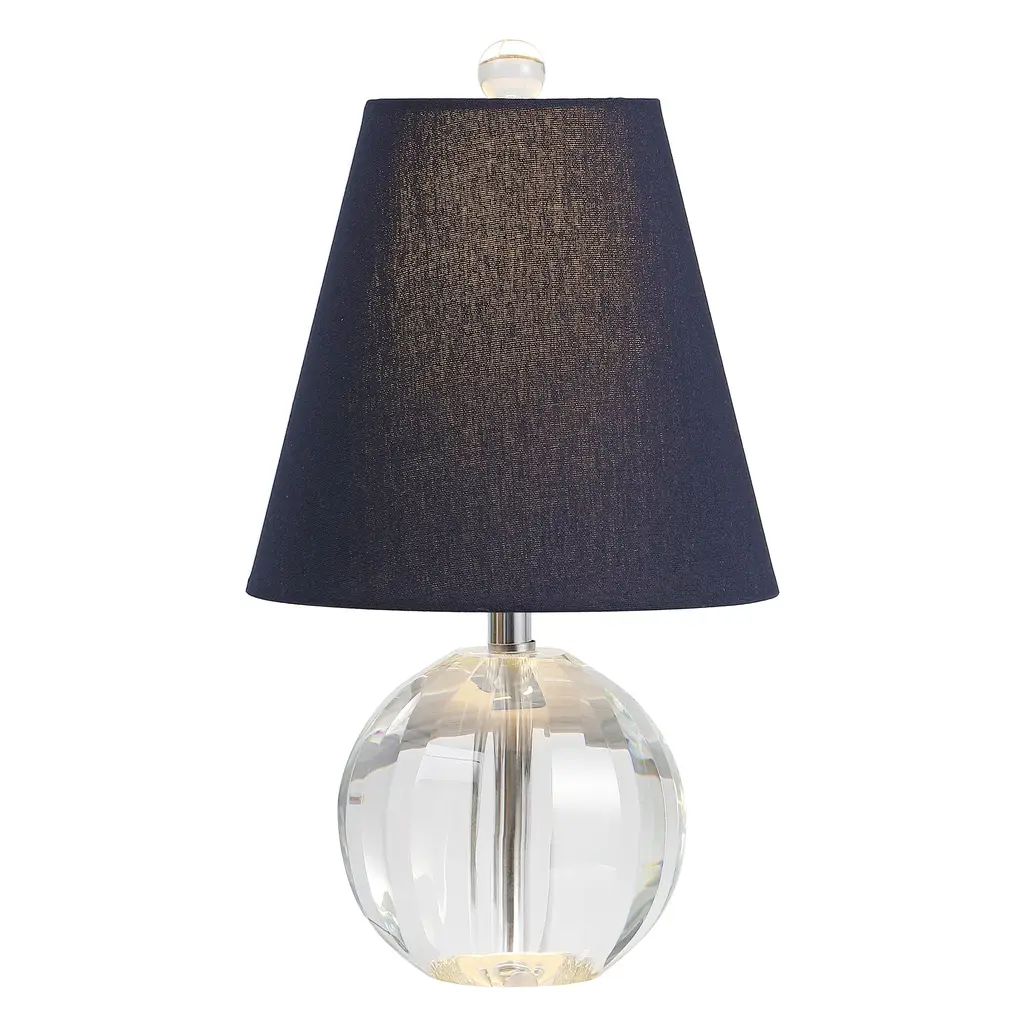 This small crystal lamp is only 9" deep, and adds low-key glamour to your bedroom or living room. The gently fluted glass orb and tapered shade have Hollywood Regency flair, finished with upscale touches like the crystal finial and silk-wrapped cord. Includes an LED bulb.Features:Dimensions:About us:You see a lamp.We see a decorative work of art.A perfectly curved shade casts a dramatic shadow on a floor. A silk cord you never want to hide. Compatible with LED lightbulbs: as easy on the environment as they are on the eyes. The JONATHAN Y Lighting collection considers every detail from impeccably sourced materials to designer styling. And our prices are so attractive, we've transformed a functional necessity into a fashion accessory.JONATHAN Y Lighting - a fashion revolution in home decor.