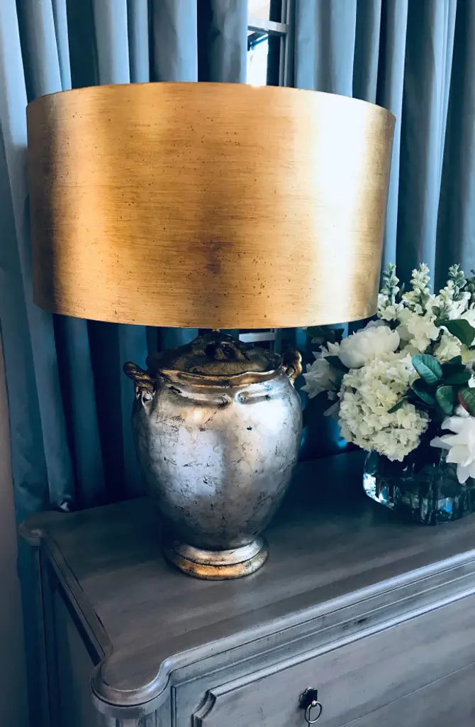Gold And Antique Silver Large Drum Shade Table Lamp