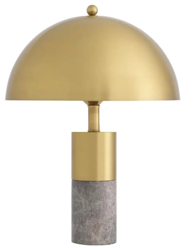 Add a Mid-Century Modern look to any room with the Flair Table Lamp. With its chic cylindrical gray marble base and dome-shaped lampshade in brass finish, this contemporary table lamp will grant sophisticated style to your décor.W5 x D20 x H28 in | Weight 22lbsW13 x D50 x H70 cm | Weight 10kgsMaterial | Iron, Marble1 Bulb (not incl.): Max. 40W - E26 - 110 Volt