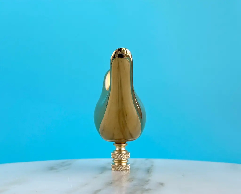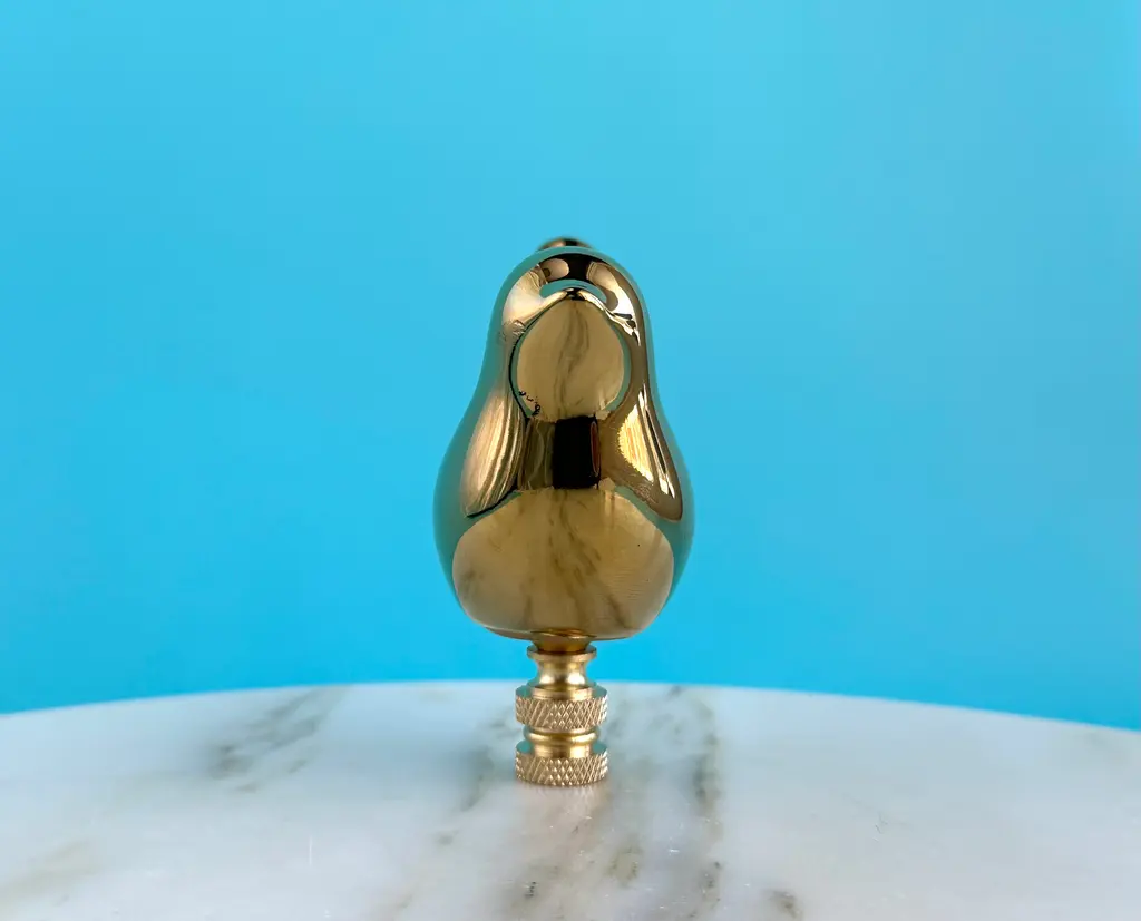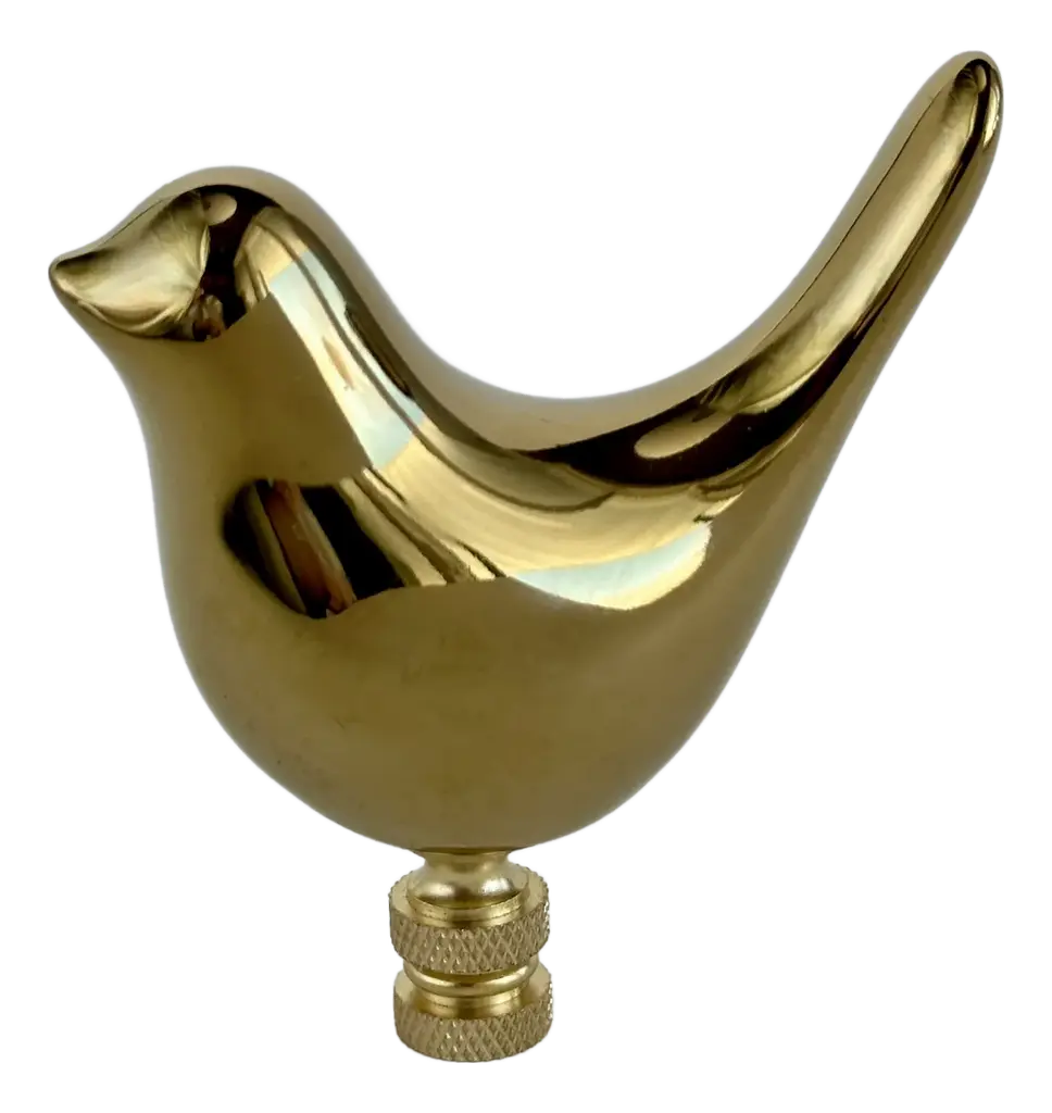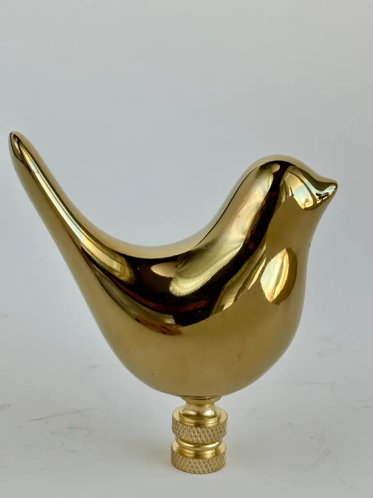 Upgrade your existing lighting or add a distinctive finishing touch to any table lamp with a designer lamp finial. Crafted from a gold ceramic bird mounted on knurled brass hardware. Sized to fit a standard-size lamp harp with a 1/4" stem.