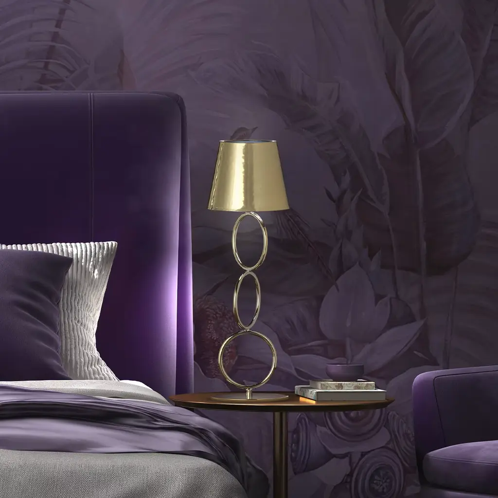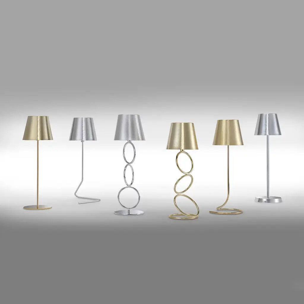 This elegant lamp merges traditional details with modern technology. The stunning satin gold finish elevates the glamour of the piece, evident in the hand-wrought lampshade and three-ringed stem. Ringed stem, the work of eclectic designer Itamar Harari's ingenuity. The lamp features a pressure sensor, turning on the LED light source with just a touch (light color and intensity can be changed). Cordless, it recharges thanks to a USB cable (provided with purchase).