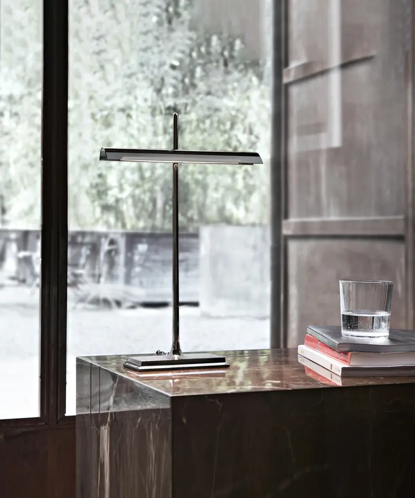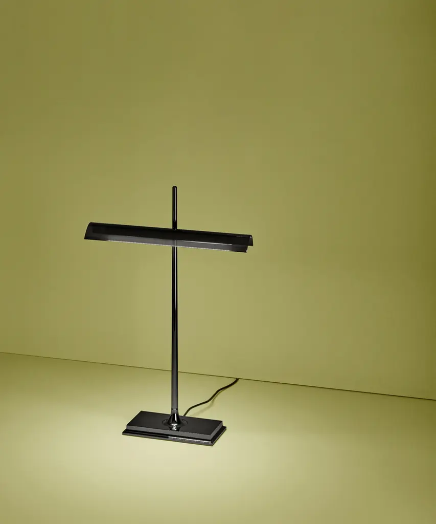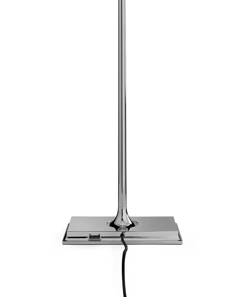 This well-known design gets a technological twist thanks to artist Ron Gilad, who created the Goldman to feature diffusers made of clear methacrylate and an aluminum frame. There is a USB plug built into the base, as well as an optical switch that is dimmable and features Soft Touch technology. The power supply is on a plug with interchangeable sockets. The inspiration behind the design: Inspired by the legendary "banker's lamp," Ron Gilad recreated the spirit of this style through the use of innovative and modern materials. This authentic design is produced in Italy exclusively by Flos.