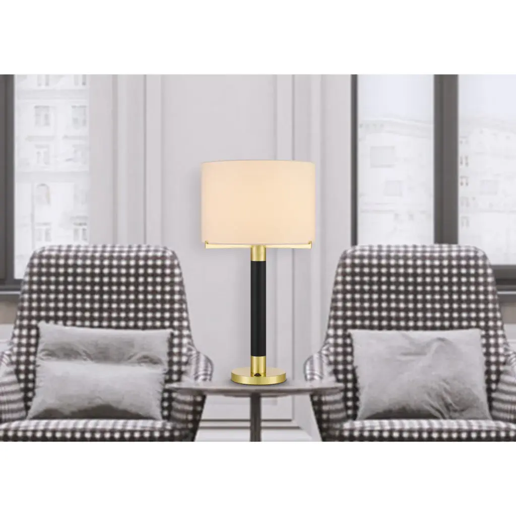 Refresh your space with this black cylinder table lamp. It features a matte black body with antique brass touches. With a clean and simple presentation, this lamp is a great accessory to use bedside, or next to your favorite chair or sofa.