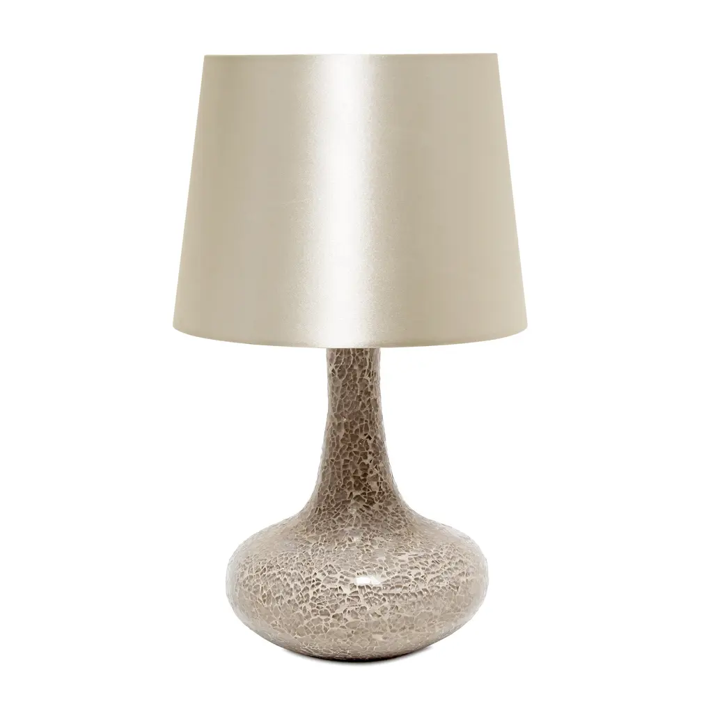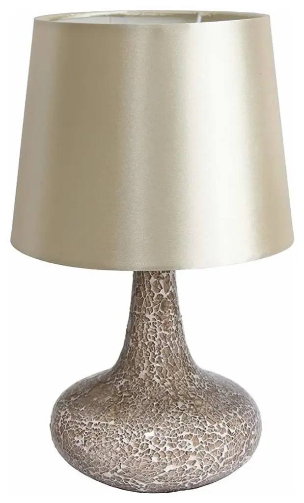 Simple Designs Mosaic Tiled Glass Genie Table Lamp with Satin Look Fabric Shade, Champagne.Bejewel your home with this gorgeous and unique genie table lamp. It features a beautiful mosaic tiled base and matching fabric shade. This fabulously chic design will be the envy of all your friends! We believe that lighting is like jewelry for your home. Our products will help to enhance your room with elegance and sophistication.Gorgeous mosaic tiled base. Matching fabric shade.Uses 1 x 40W Type B E12 Candelabra Base bulb (not included). Dimensions: L: 8.25 x W: 8.25 x H: 14.17- Bejewel your home with this gorgeous and unique genie table lamp- It features a beautiful mosaic tiled base and matching fabric shade- This fabulously chic design will be the envy of all your friends! We believe that lighting is like jewelry for your home. Our products will help to enhance your room with elegance and sophistication.- Gorgeous mosaic tiled base- Matching fabric shade- Uses 1 x 40W Type B E12 Candelabra Base bulb (not included)- Dimensions: L: 8.25 x W: 8.25 x H: 14.17
