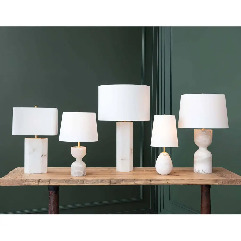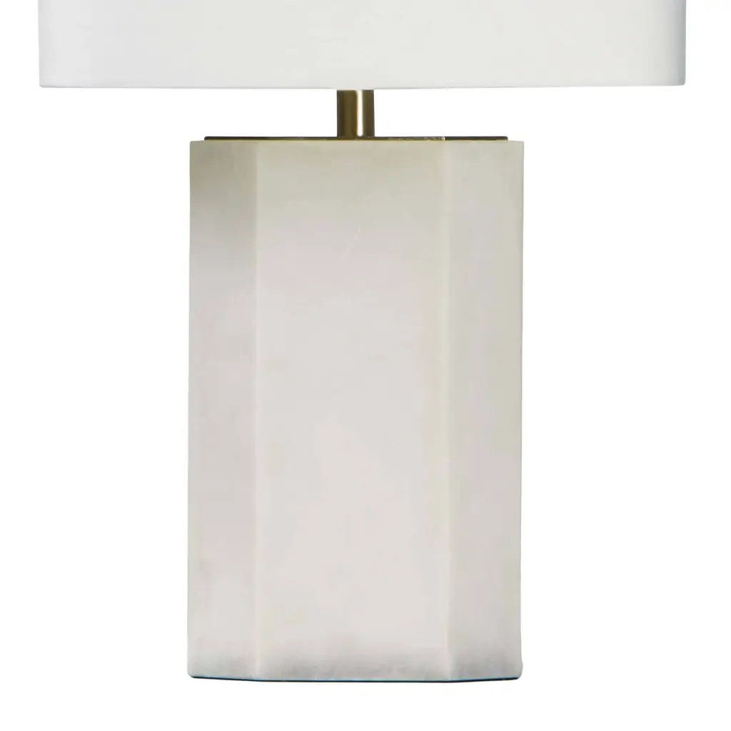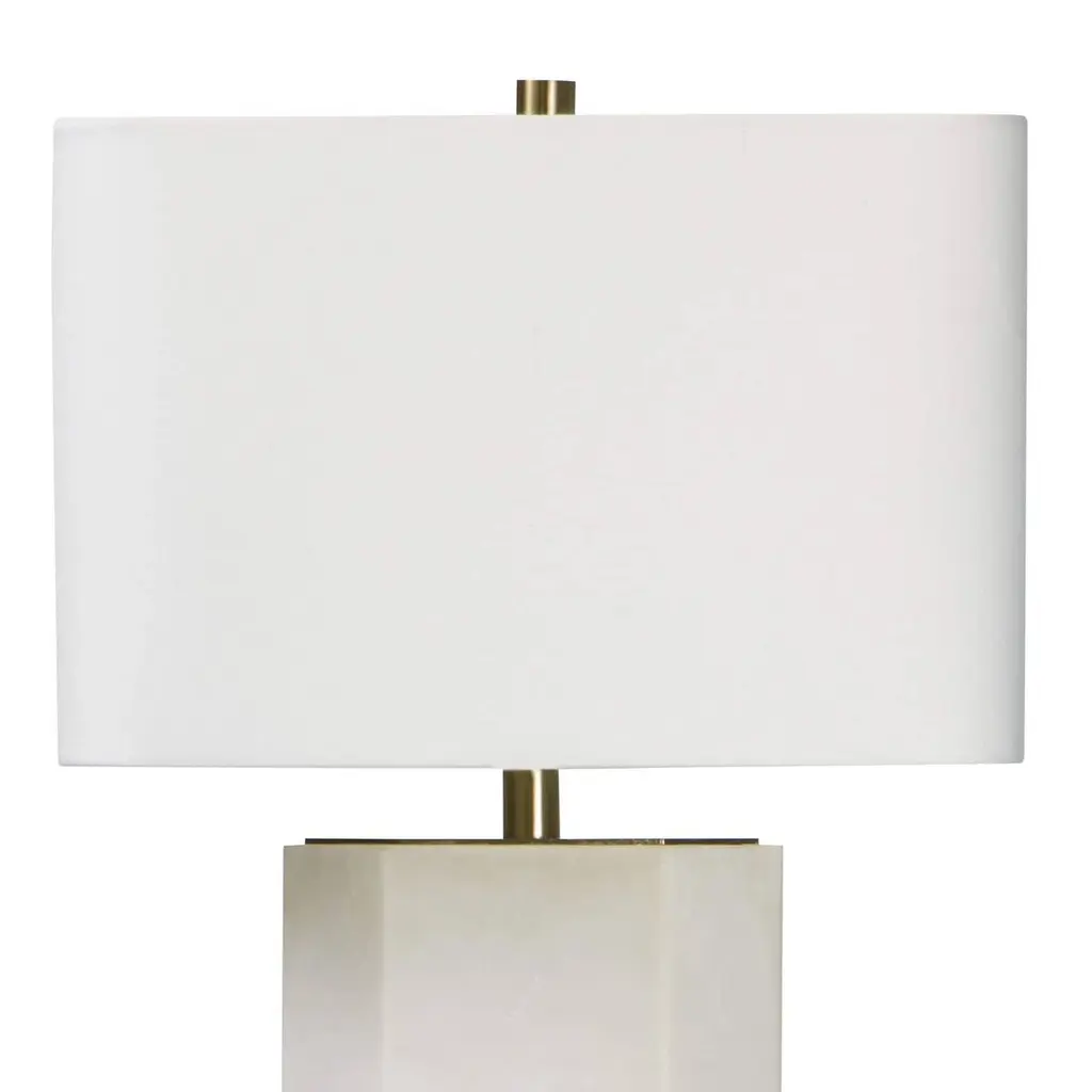 Clean lines and elemental materials lend an iconic quality to this lamp. Featuring natural brass hardware, a crisp natural linen shade is held in place by a brass finial. The elegant geometrical profile of the lamp makes a simple yet stunning statement when viewed from any angle.