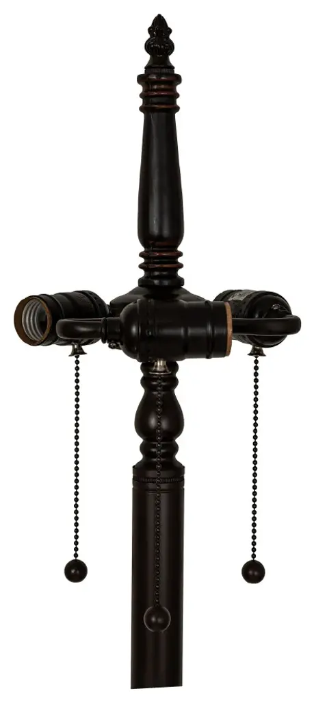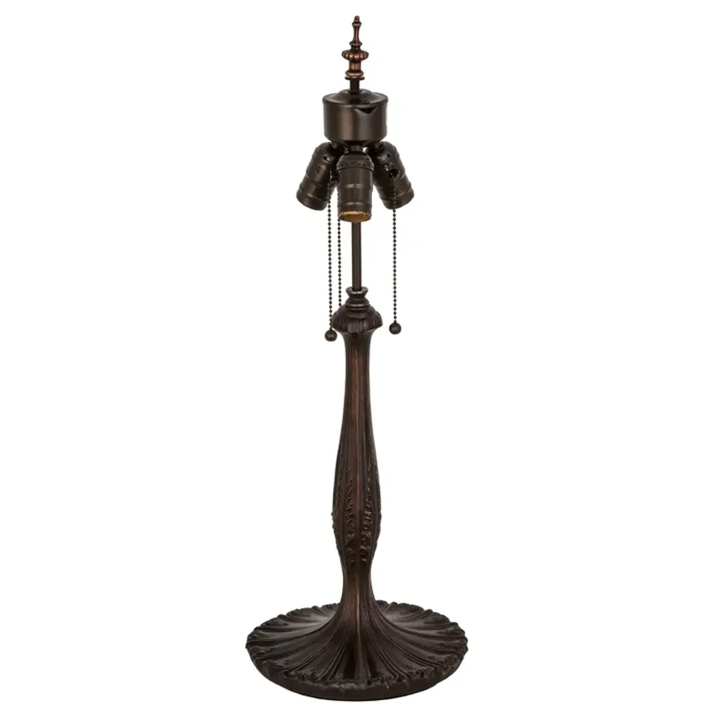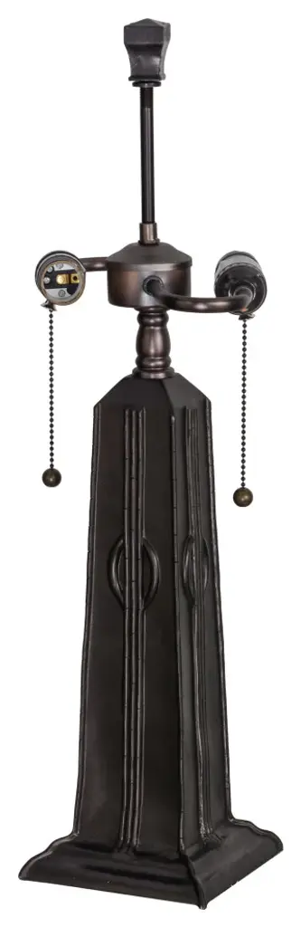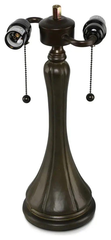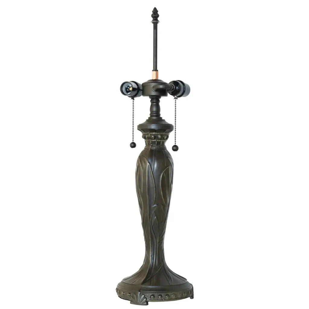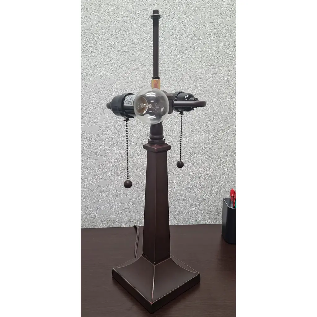 Boasting a handy pull-chain switch, a four-sided pyramidal shade for geometric charm, and a dark bronze finish across its flared, four-side base, this piece is just begging to illuminate your space. With an antique silhouette worthy of the most regal scenes, this Tiffany-style art glass lamp offers you rich, vivid hues of blue, green, yellow, and more.Features:Metal and glass constructionIncludes 1 Tiffany-style table lamp onlyGreen, yellow, and blue stained glass shadeRich, vivid, diffuse illuminationOld-school banker style for vintage charmDark bronze finish on metal body/stem/baseWeighs 11 lbs. totalDimensions: 14 inches wide x 14 inches deep x 21 inches tall