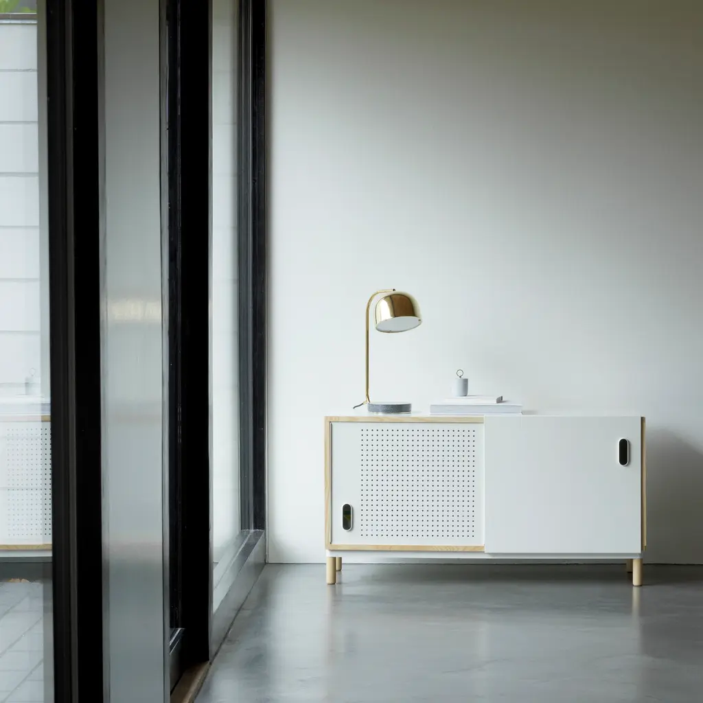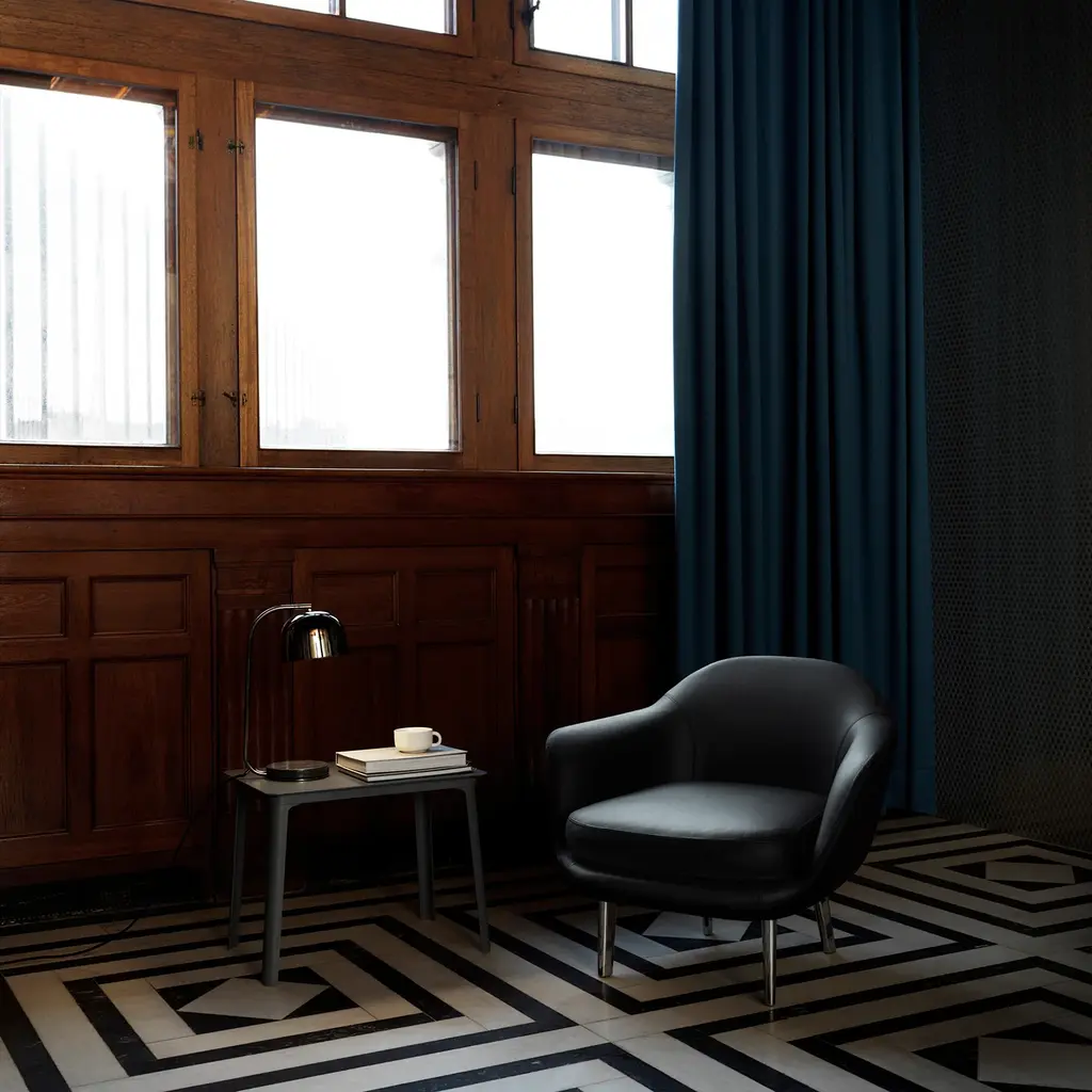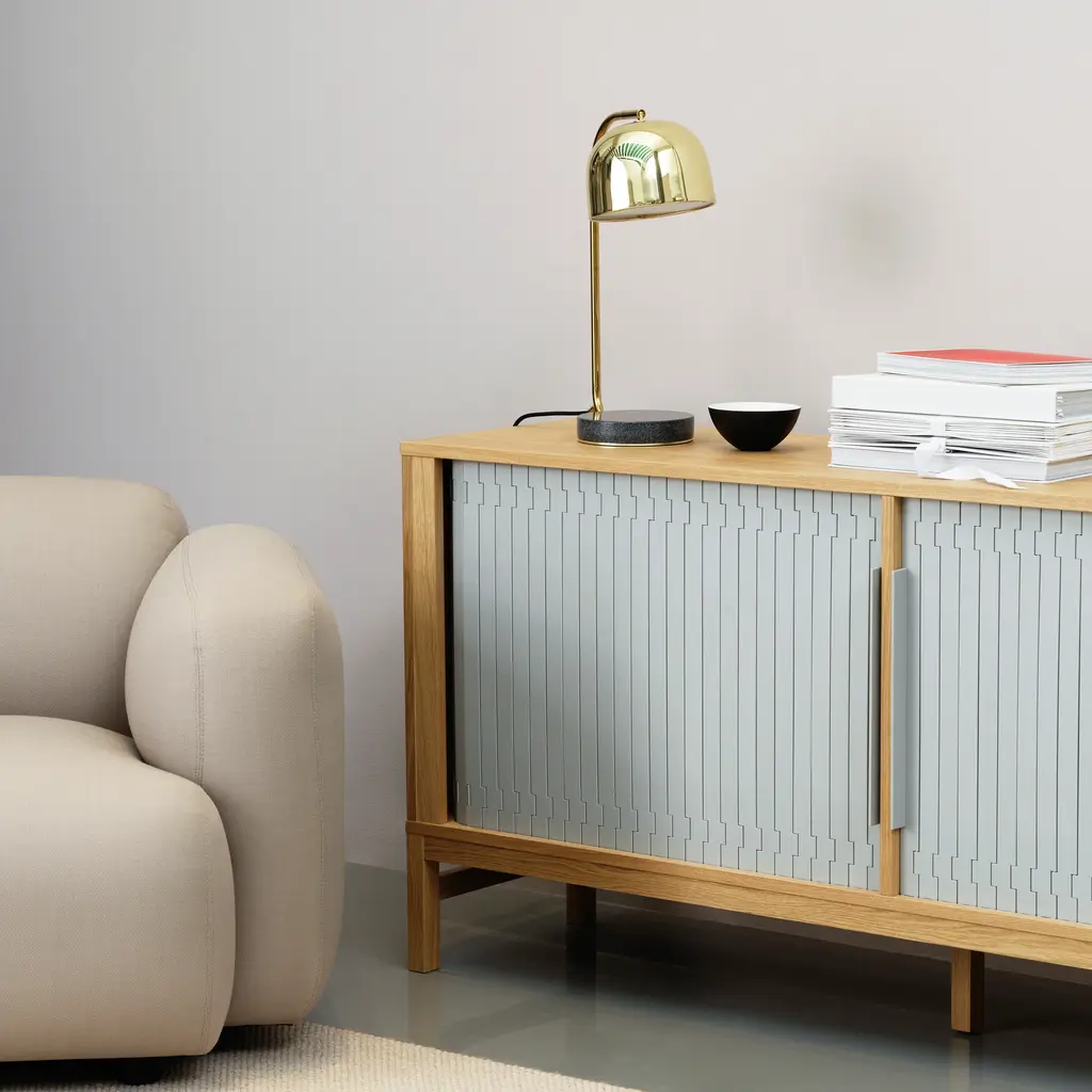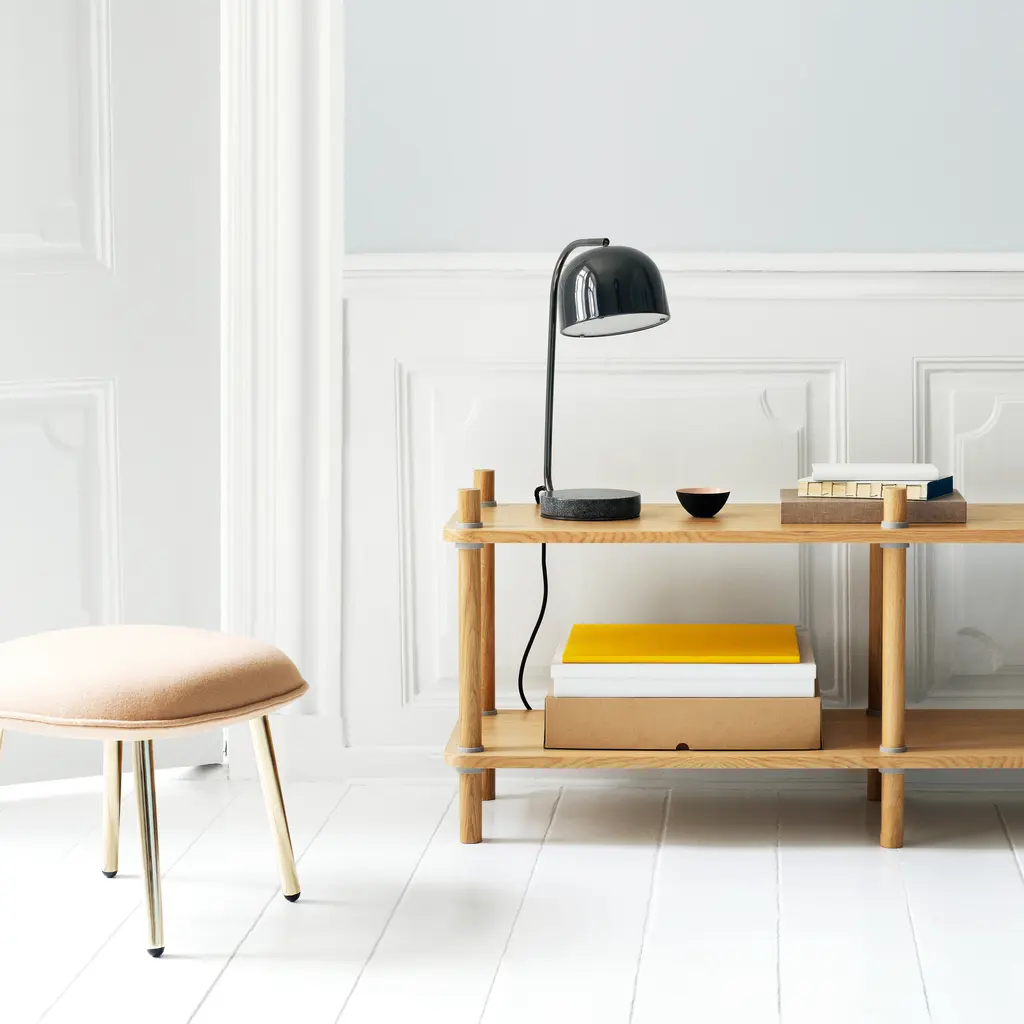 As good-looking as it is functional, this table lamp also permits light to be adjusted in any direction. A striking combo of natural granite base and polished metal, this Grant model is equally at home on a desk, the bedside table or a living room sideboard. The gleaming shade can be tilted up or down via a ball-joint mechanism while the fully dimmable, replaceable LED light source comes with a dispersion lens—for illumination that goes from a soft ambient glow to a bright reading level.