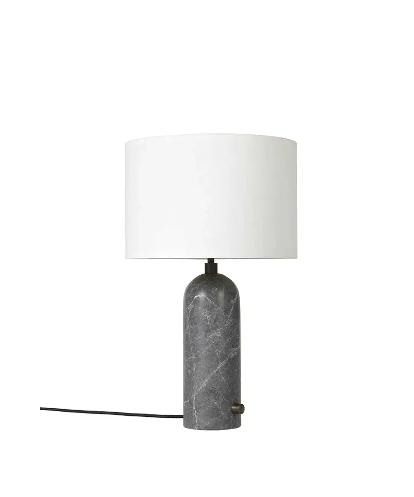 An effortless balance of contrasting materials and design styles. Anchored by a heavy, cylindrical base and contrasted by its lightweight, airy shades, the Gravity Table Lamp emerges as a striking, sculptural whole. Designed by Space Copenhagen and produced in Denmark by Gubi - a Copenhagen-based purveyor of historic and contemporary designs.