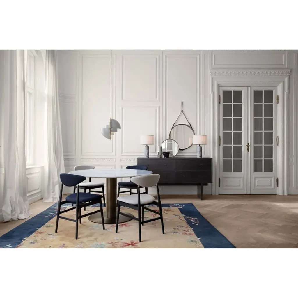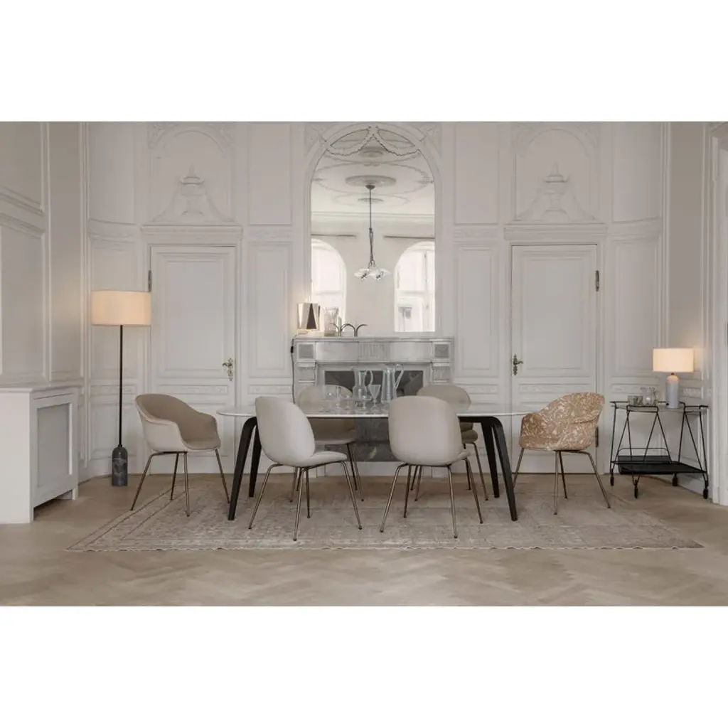 GUBI’s Gravity table lamp plays with the contrast of a subtle, airy fabric shade and a heavy base made of marble or metal. Designed by Space Copenhagen, the esthetics of the Gravity collection are based on soft but precise cylindrical shapes. The well-balanced geometrical elegance is a perfect addition to many kinds of interiors and especially larger spaces. Gravity’s lightly-colored fabric shade provides a gentle light and also highlights the texture of the marble or metal base.