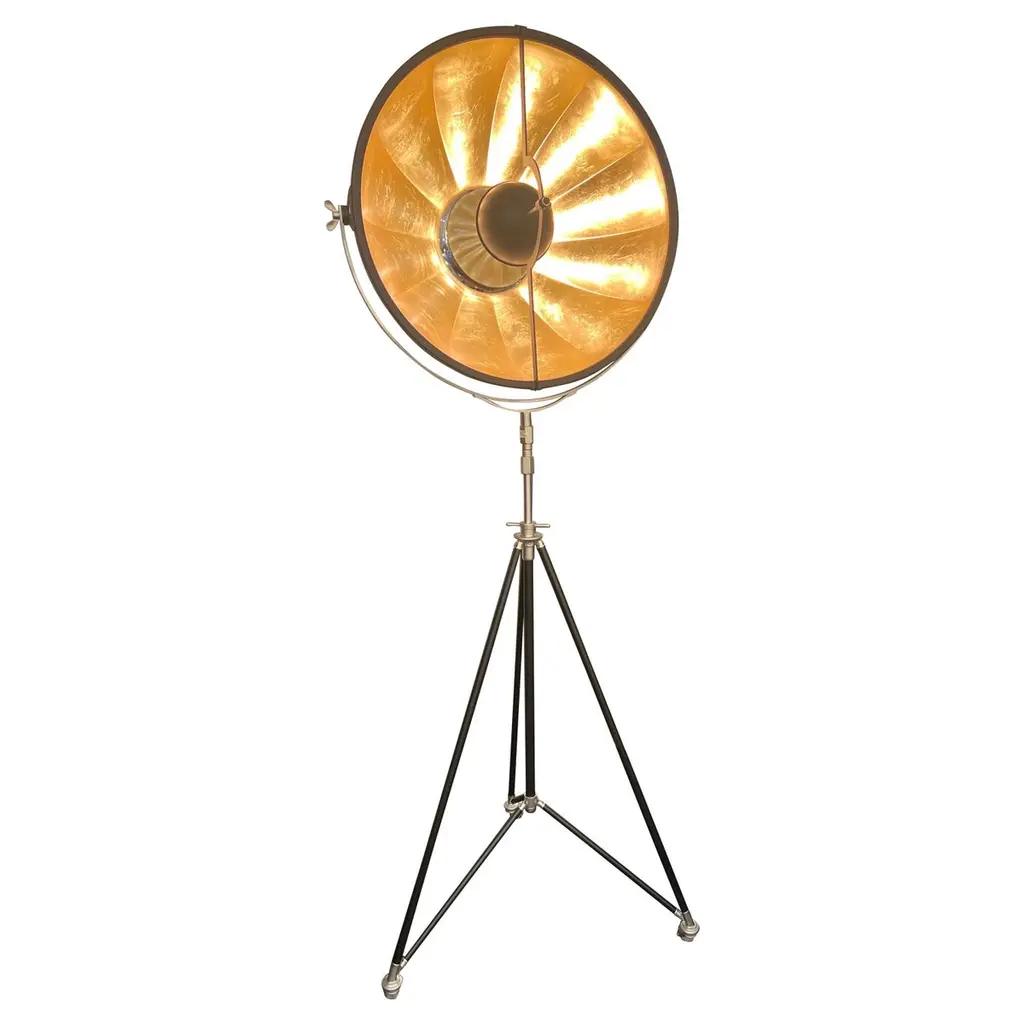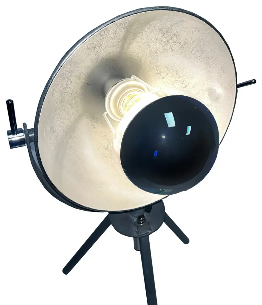 This table lamp is in grey finish. This fixture is made out of steel with tripod headlight. It comes with gold accents, adding even more modern. Lighting Information:Bulb type: E26Number of bulbs: 1Bulb not includedMax wattage: 100
