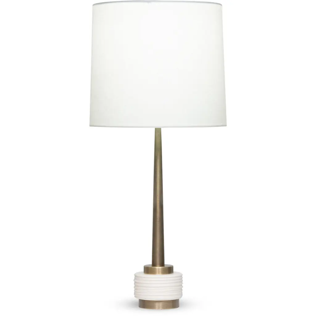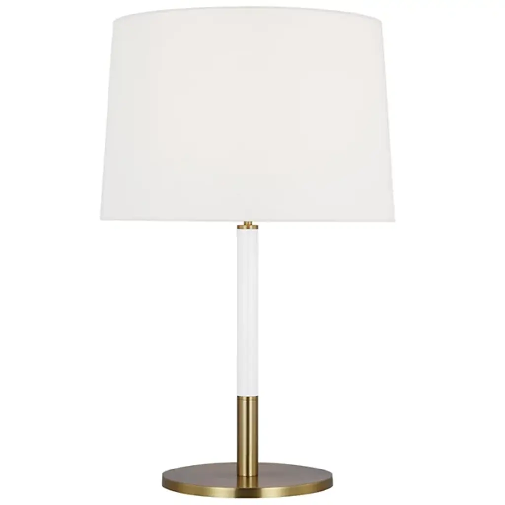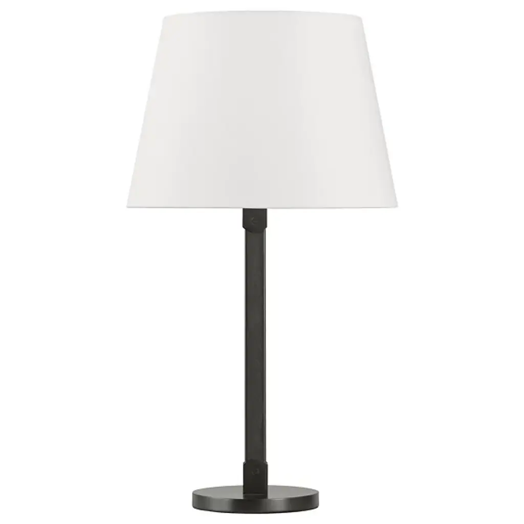 The Grayson Table Lamp from Visual Comfort Studio brings the Lauren Ralph Lauren equestrian aesthetic to a convenient tabletop format. Drawing from bridle imagery, this lamp incorporates characteristic leather details that give it a sense of heritage and craftsmanship. Its steel base provides stability and substance, while the minimal design sensibility ensures it works effectively in various spaces, including bedrooms, home offices, and living areas. The practical socket switch allows for easy operation, and the lamp accommodates standard bulbs for hassle-free maintenance.