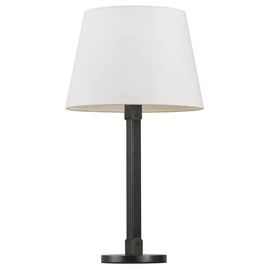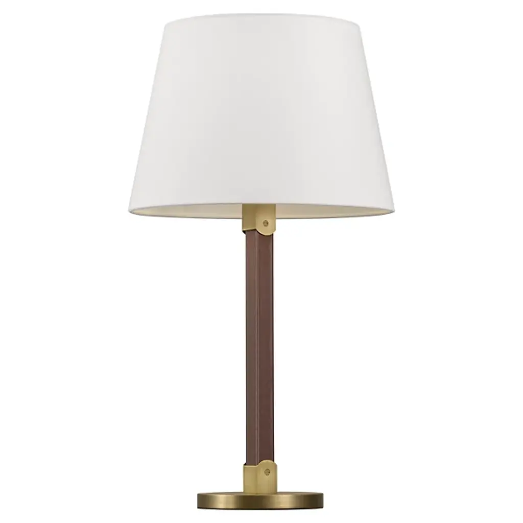 The Grayson Table Lamp from Visual Comfort Studio brings the Lauren Ralph Lauren equestrian aesthetic to a convenient tabletop format. Drawing from bridle imagery, this lamp incorporates characteristic leather details that give it a sense of heritage and craftsmanship. Its steel base provides stability and substance, while the minimal design sensibility ensures it works effectively in various spaces, including bedrooms, home offices, and living areas. The practical socket switch allows for easy operation, and the lamp accommodates standard bulbs for hassle-free maintenance.