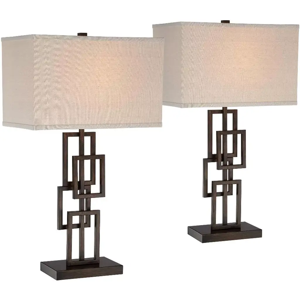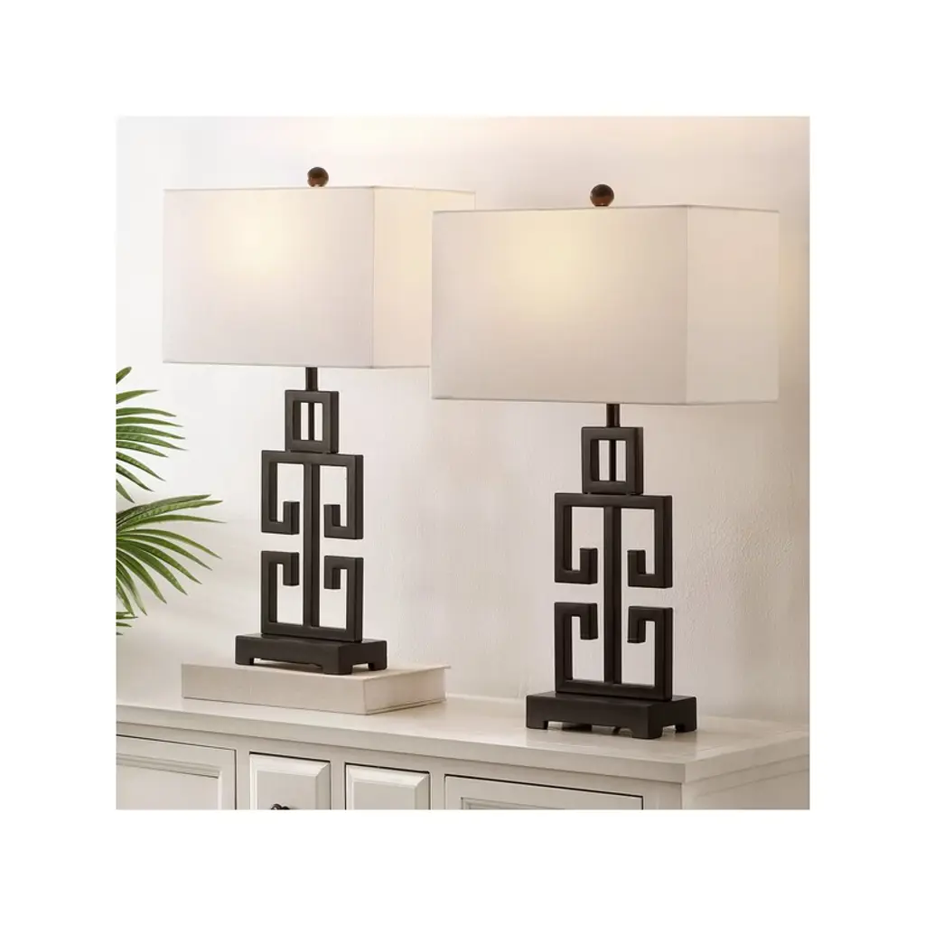 Transform your space with the Greek Key 29-inch oil rubbed bronze metal table lamp set. This stunning pair combines an elegant metal body with a sleek fabric shade to add a touch of sophistication to any room. The oil rub bronze finish exudes warmth and style, making it a perfect addition to your home decor. Whether placed in your living room, bedroom, or office, these lamps provide both function and beauty. Illuminate your space with a soft and inviting glow while enhancing your interior with classic elegance. Embrace the timeless charm and let these lamps become a centerpiece in your home.