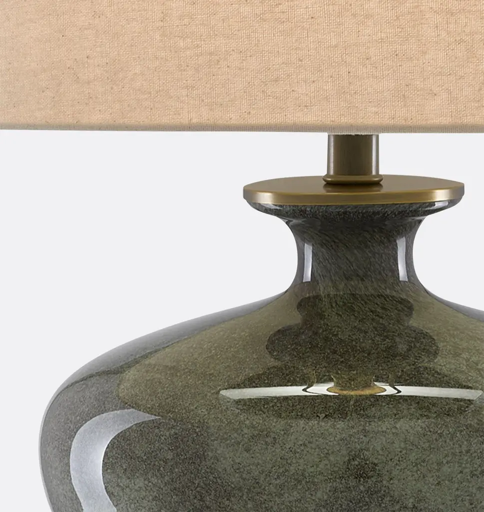 With a beautiful, curved glass base, Greenlea makes a refined statement in your home. Shades of gray and green mix for a dimensional palette, complemented organically by a linen shade.