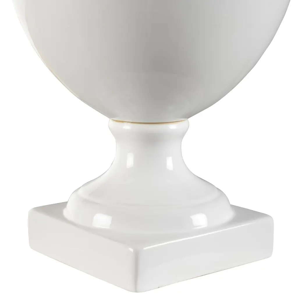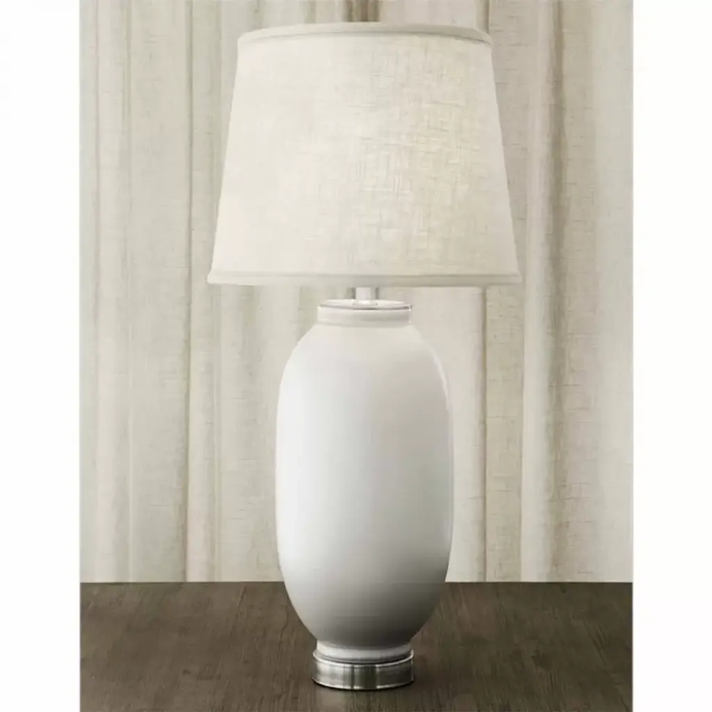 Greenwich Ceramic Lamp is a transitional glazed Italian ceramic table lamp. An off-white linen drum shade gives an elegant touch and helps to create ample illumination throughout your space.