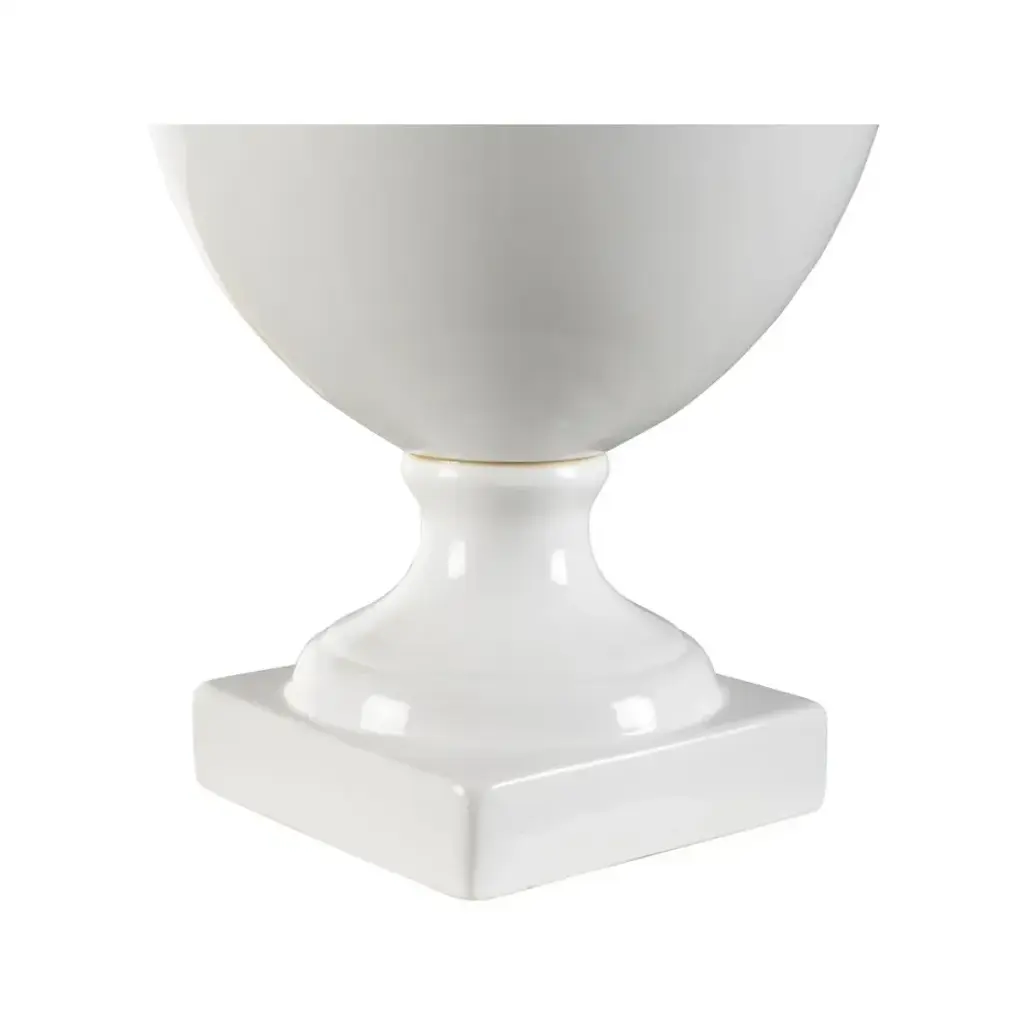 Greenwich Ceramic Lamp is a transitional white glazed Italian ceramic table lamp. An off-white linen drum shade gives an elegant touch and helps to create ample illumination throughout your space.