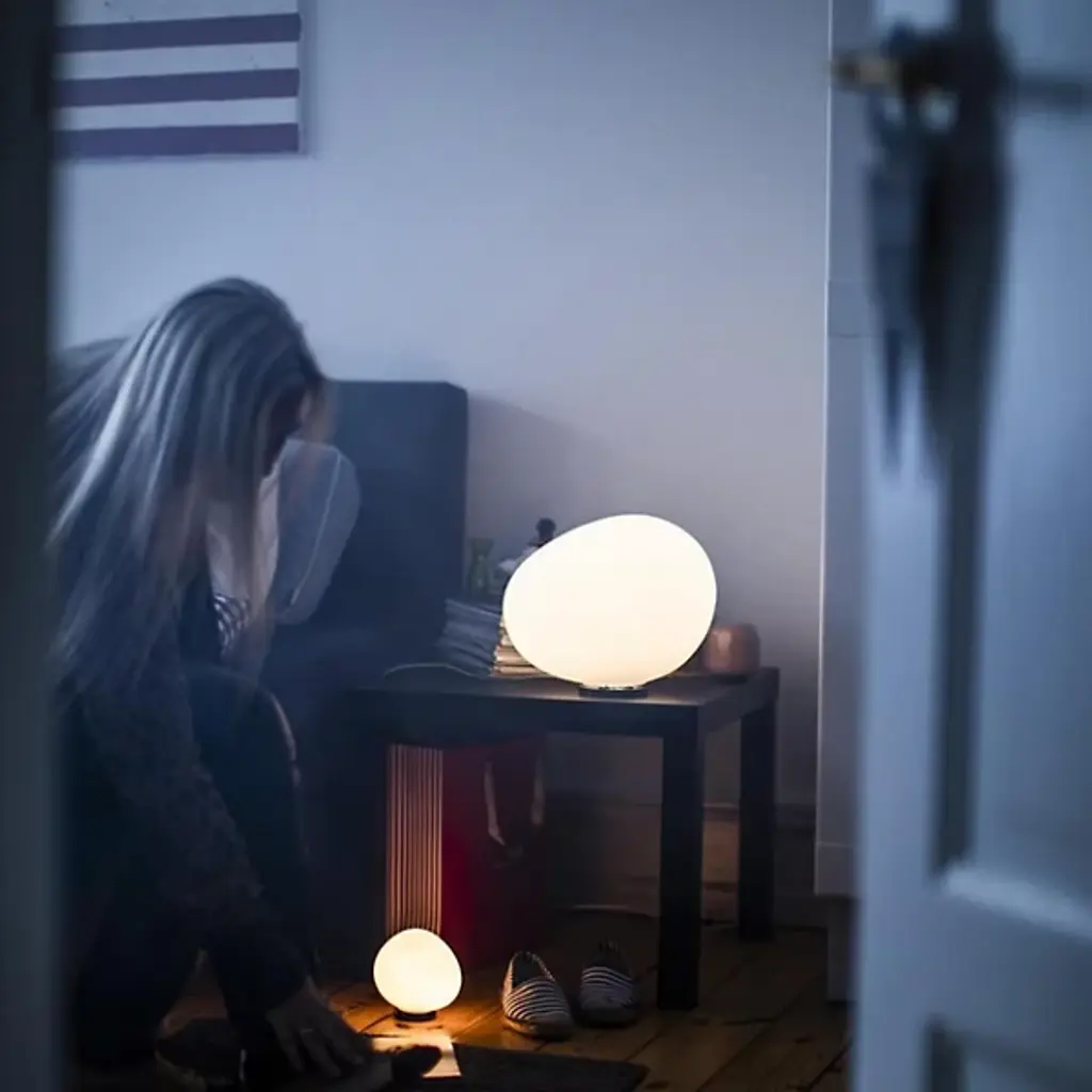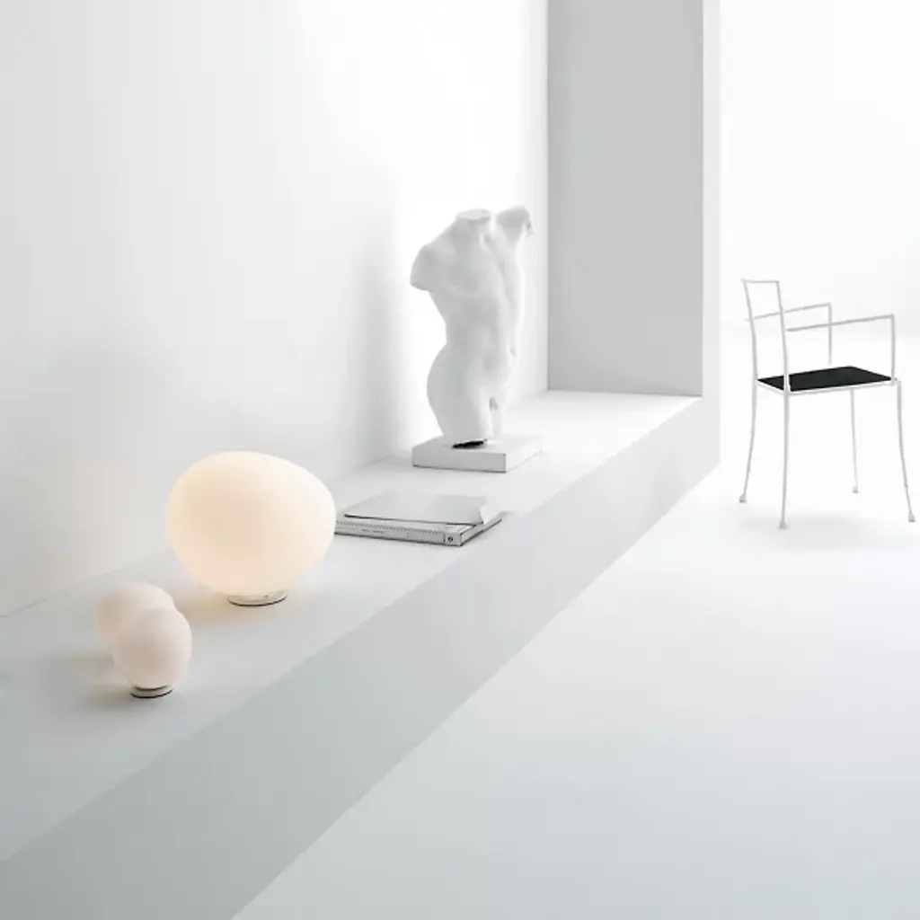The Foscarini Gregg Table Lamp offers the elegance of satinised free-blown glass, available in a variety of sizes. A smooth, organic and familiar shape that avoids the use of pure geometry, the Gregg adds intriguing visual depth to spaces. Also available as a Pendant and Ceiling/Wall Combo. Designed by Ludovica and Roberto Palomba.