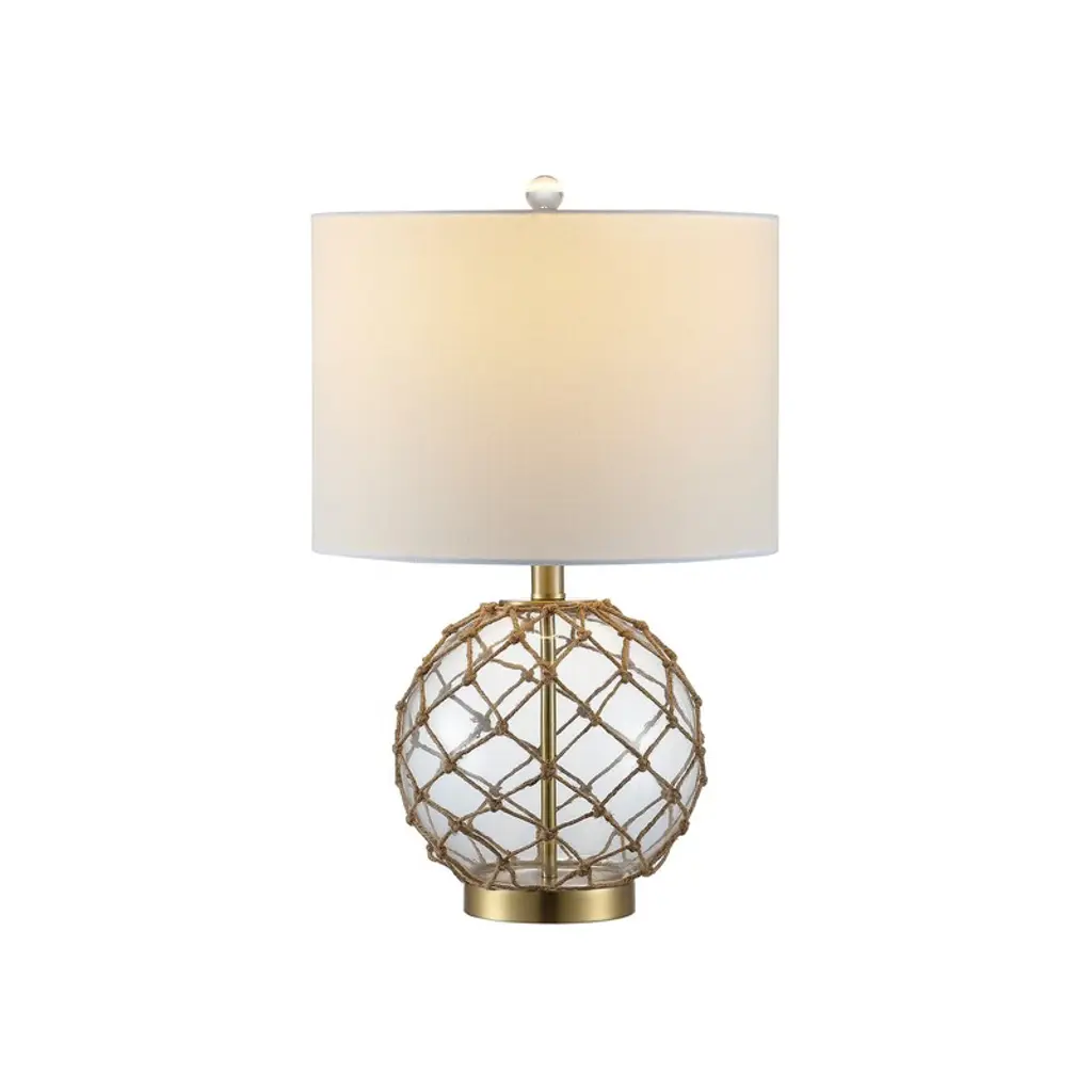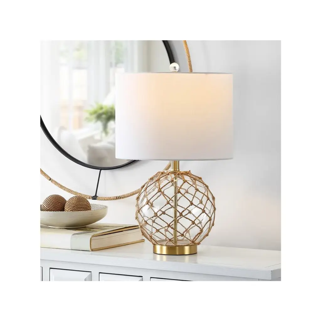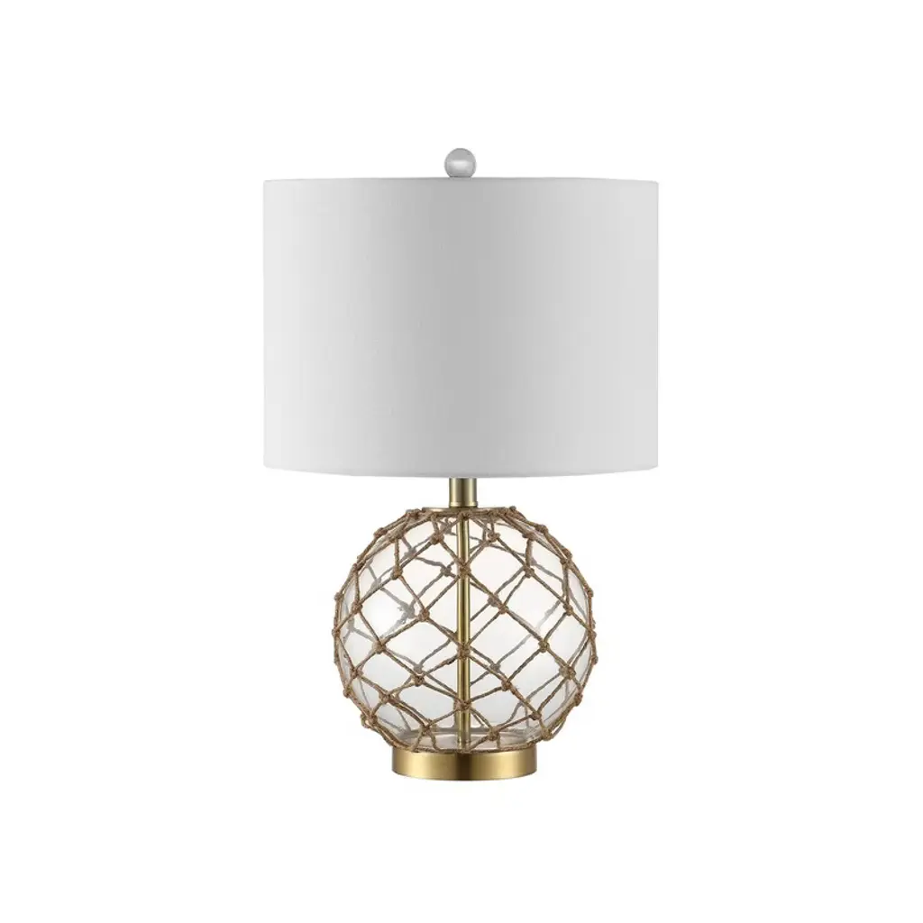Illuminate your space with the captivating Gremeli 22 inch glass table lamp set. This set of two lamps effortlessly combines elegance and functionality, featuring a natural and clear color palette that seamlessly blends with any decor. Crafted with an exquisite mix of glass, rope, and fabric, each lamp is designed to create a warm and inviting atmosphere in any room. The natural rope detailing wraps around the glass base, adding a touch of rustic charm while the fabric shade ensures a soft, ambient glow. Perfect for enhancing your living room, bedroom, or study, these lamps not only provide light but also enhance the aesthetic appeal of your home. Elevate your interior with the Gremeli table lamp set and enjoy a beautifully lit environment.