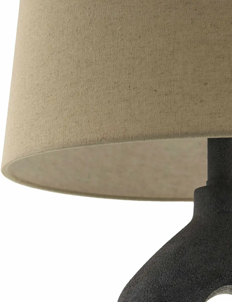 Collection: Gronsveld Colors: Black, White, Metallic - Nickel, Translucent Material: Body: Resin / Shade (Outside): Linen / Shade (Inside): Polyester / Finial: Resin Styles: Southwestern Made In: China Lighting Type: Accent Table Lighting Shade Material: Linen, Polyester Shade Color: White, White Cord Length: 6' Switch Type: 3-Way Number of Bulbs: 1 Socket Type: E-26 Bulb Wattage: 100W