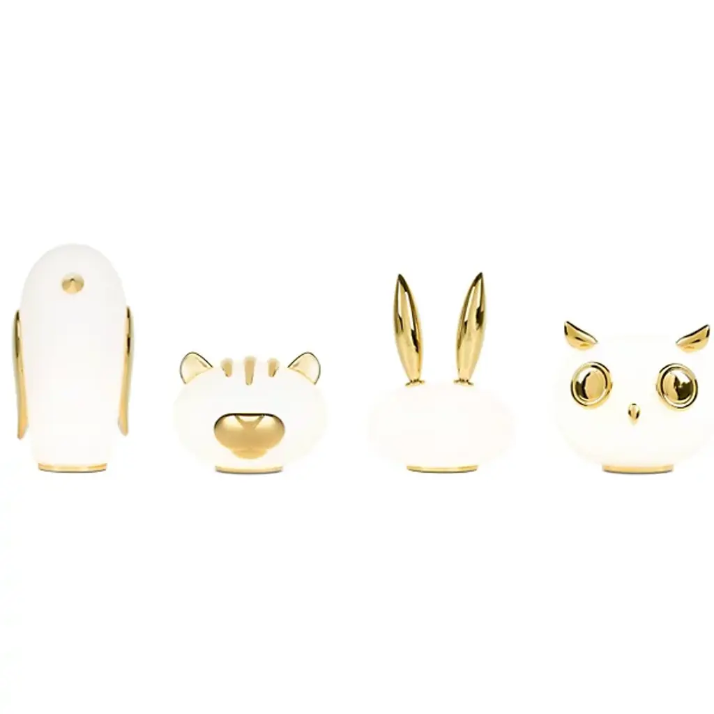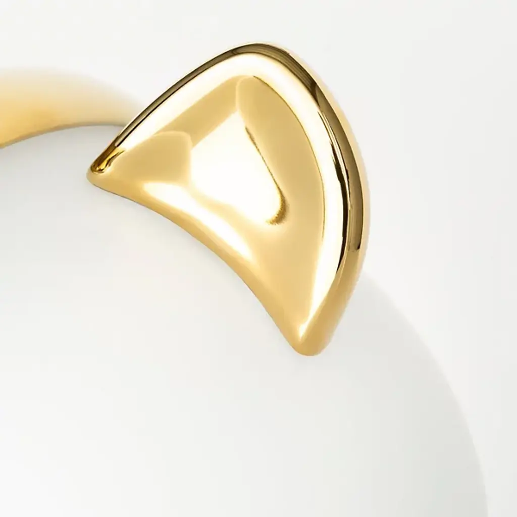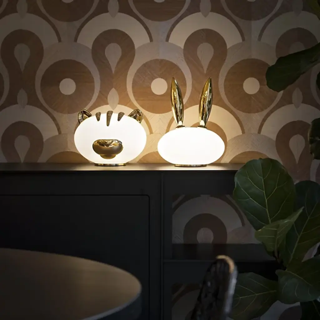 Make a charming contribution to your interior living spaces with the memorable, playful design of the Grwoww Table Lamp from Moooi. An inspired creation from the firm of Marcel Wanders, it’s made in the Netherlands. It sets an oval body of hand-blown glass atop a metal disc base, which diffuses the direct light into a warm glow, while ceramic gold-covered details express the ears, striped upper head, and snout of an adorable, stylized tiger. A cord switch and dimmer control the light, and the fixture has a unique character, as an indirect glow from within burnishes the smooth metal.