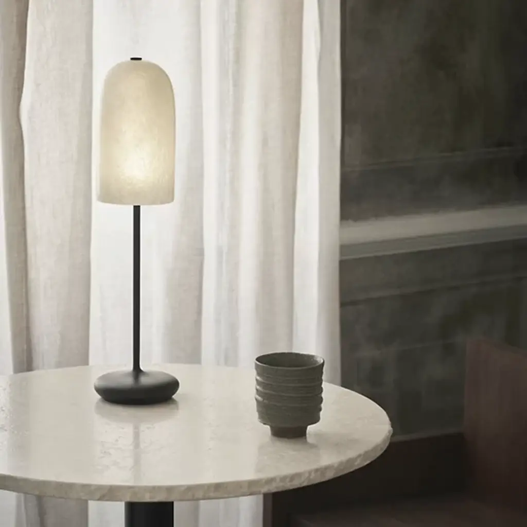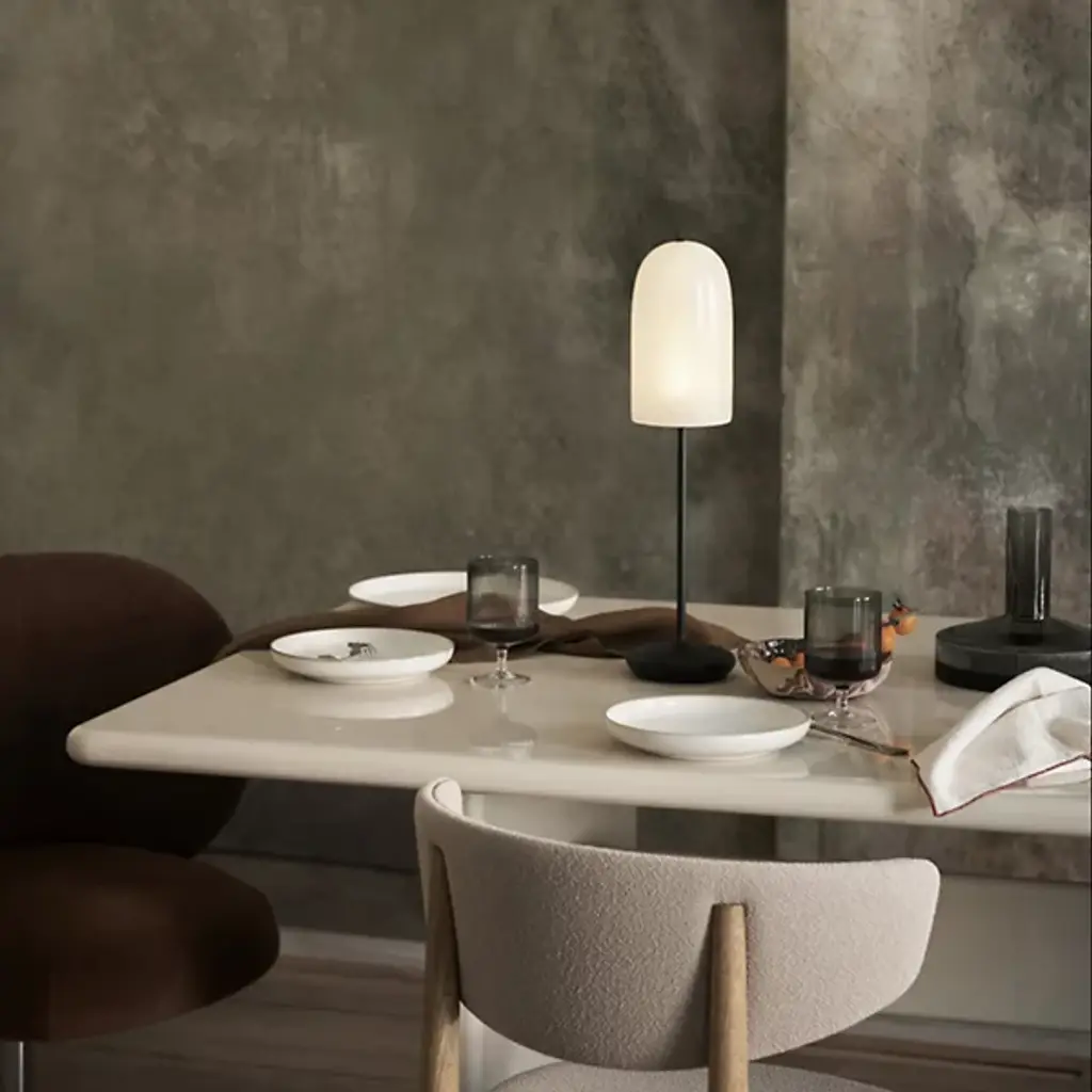 The Gry Rechargeable LED Table Lamp from ferm LIVING is named after the Danish word for dawn. It is a mid-century modern piece that uses present-day technology. This lamp is rechargeable via a USB Type-C cable. It has 30,000 hours of service life and an integrated LED that beautifully illuminates a fiberglass dome-shaped shade. A socket touch dimmer at the top of the shade offers dimmable capability in 3 steps, letting you customize the glow. It comprises durable steel and a baseplate that keeps it balanced on tables.