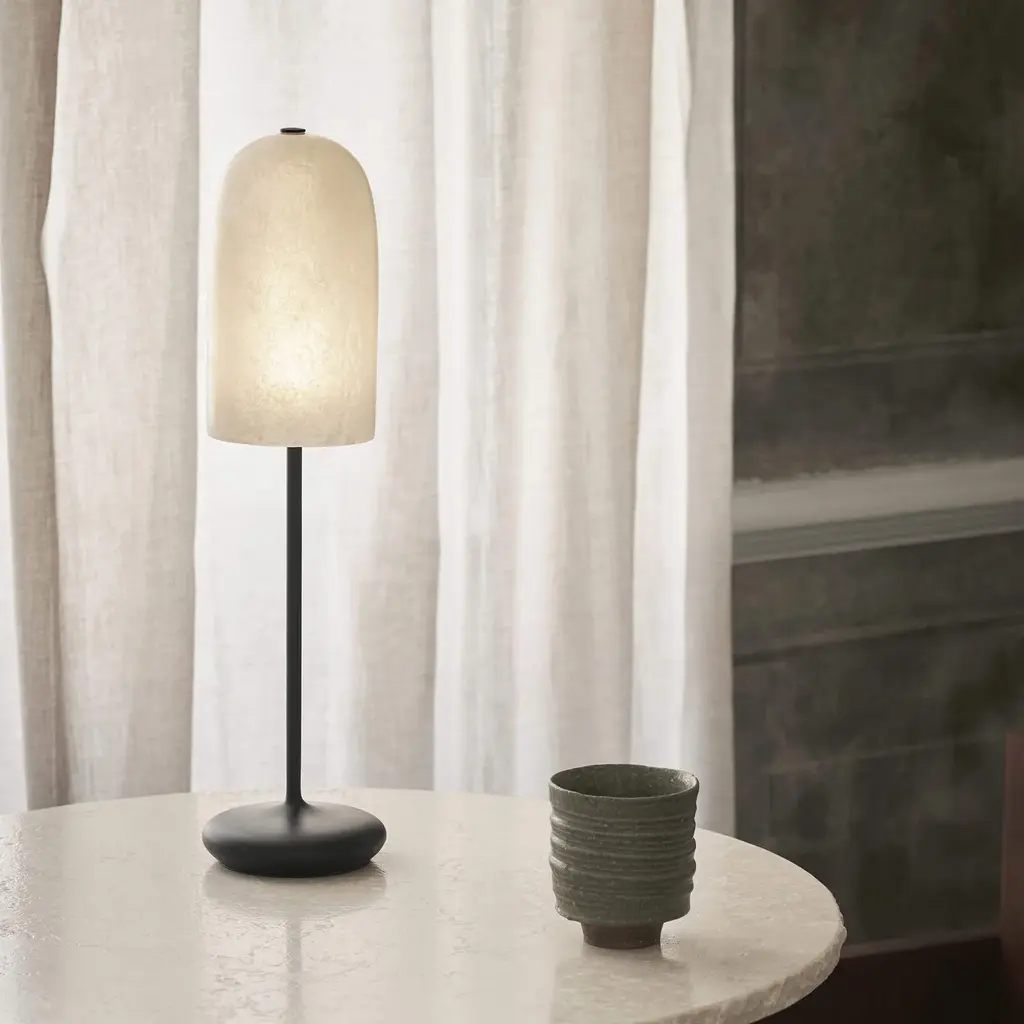 Named after the Danish word for dawn, this table lamp radiates a soft, gentle glow that’s reminiscent of sunlight peeking through morning mist. It’s made by Ferm Living, a Danish design brand known for its strong Scandinavian aesthetic and sustainable techniques.