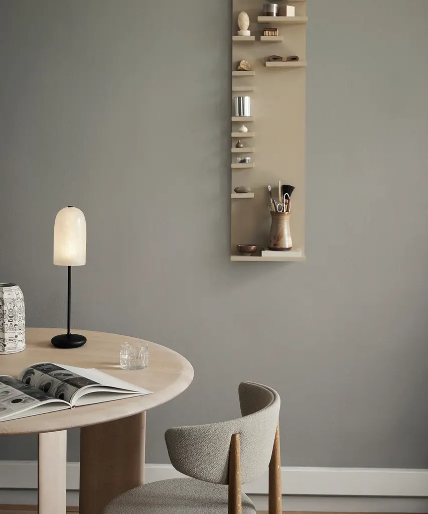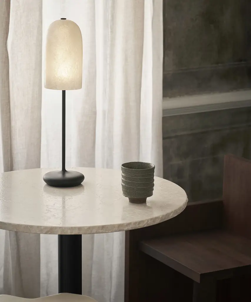 Named after the Danish word for 'dawn,' the Gry Table Lamp radiates a soft and gentle light, reminiscent of sunlight peeking through morning mist. Suitable for outdoor use, this portable lamp allows you to set the desired ambiance with its three-step touch dimmer. The textured glass fiber lampshade beautifully diffuses light and gives the Gry Table Lamp its characteristic glow.Designed and produced by the Copenhagen-based studio Ferm Living.