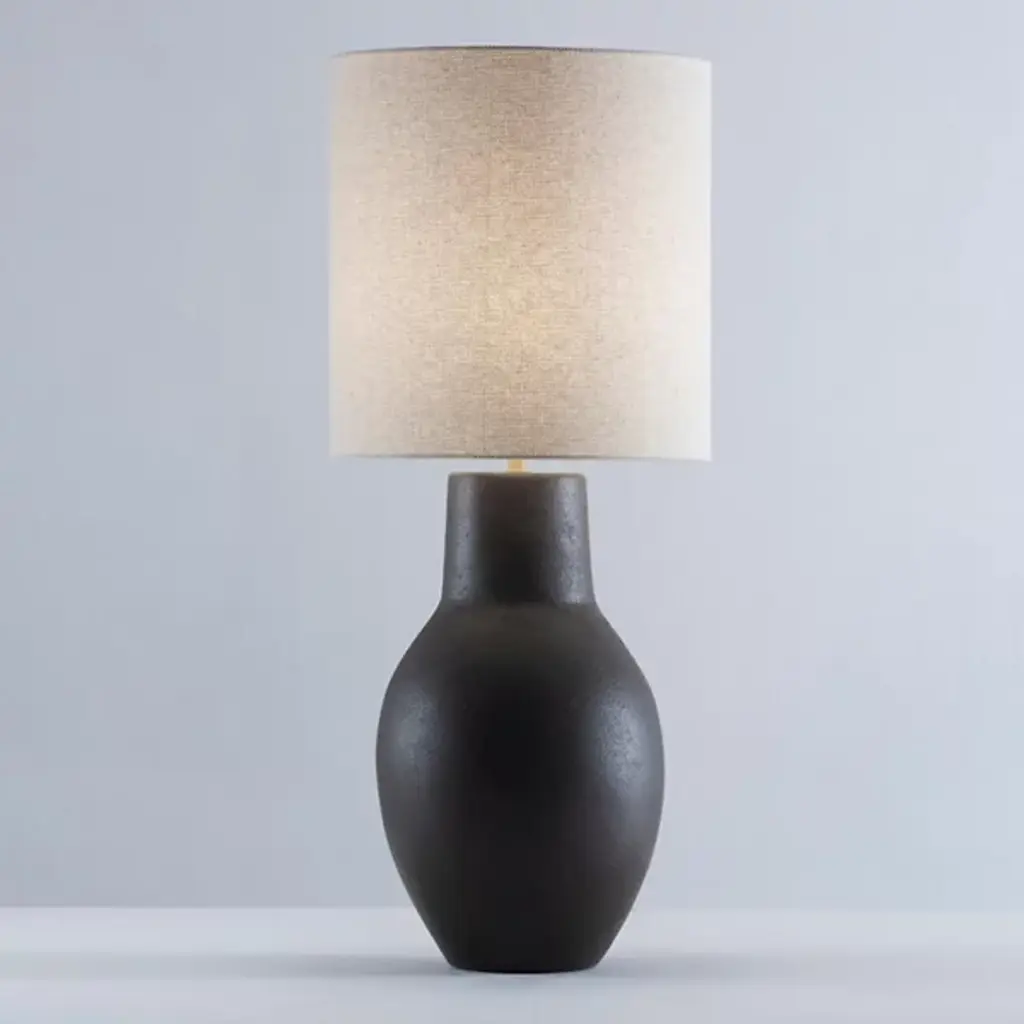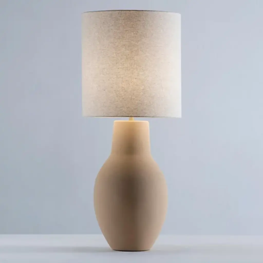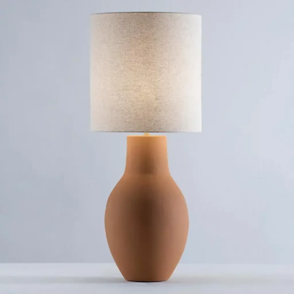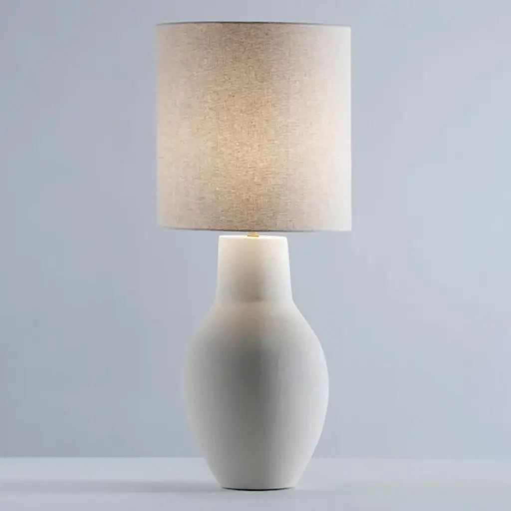 The Guaratuba Table Lamp from Geo Contemporary embodies refined simplicity. Its base, shaped like a gently tapering vase, showcases the inherent beauty of ceramic. Subtle variations in texture and hue speak to its handcrafted nature. The classic drum shade atop diffuses light evenly, creating a soothing ambiance ideal for reading nooks or bedside tables. Despite its understated design, the desk lamp holds its own in diverse settings. Its proportions suit it well for nightstands, side tables, or counter use.